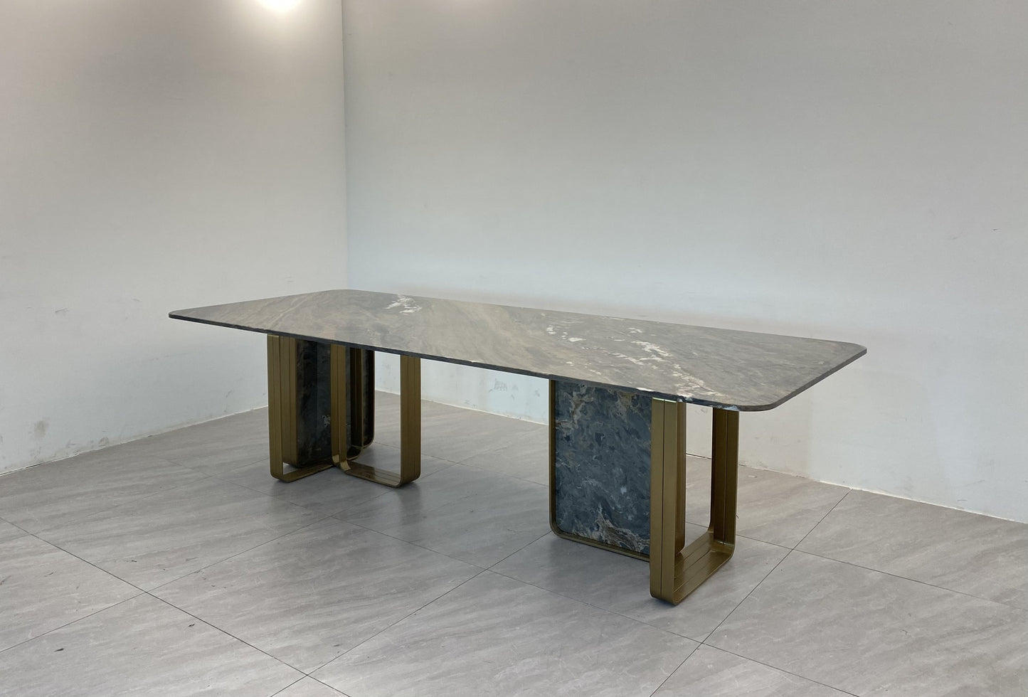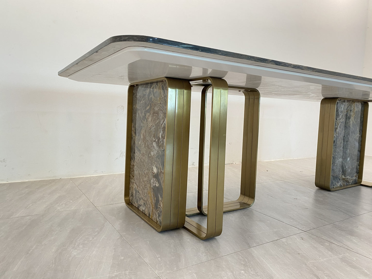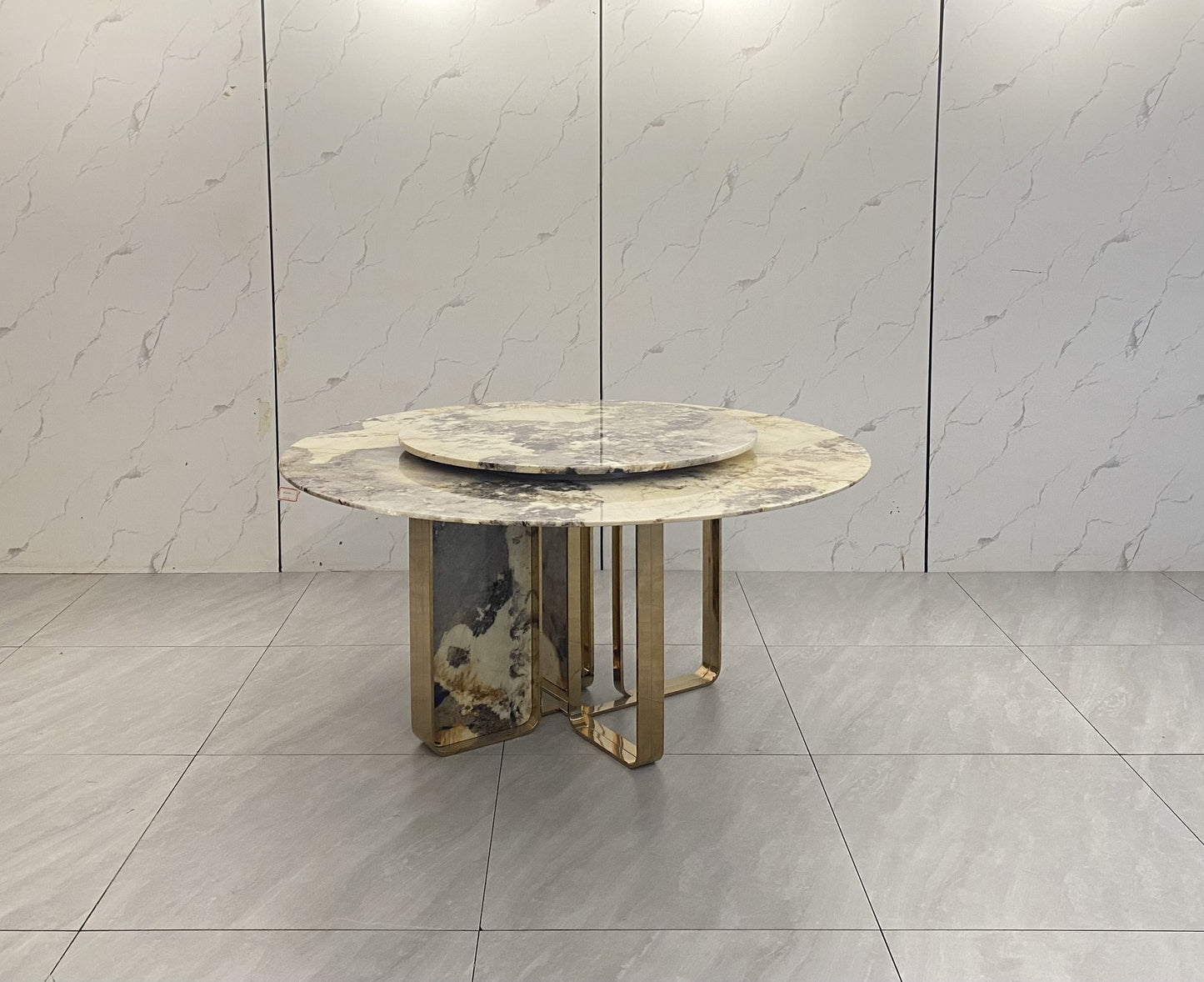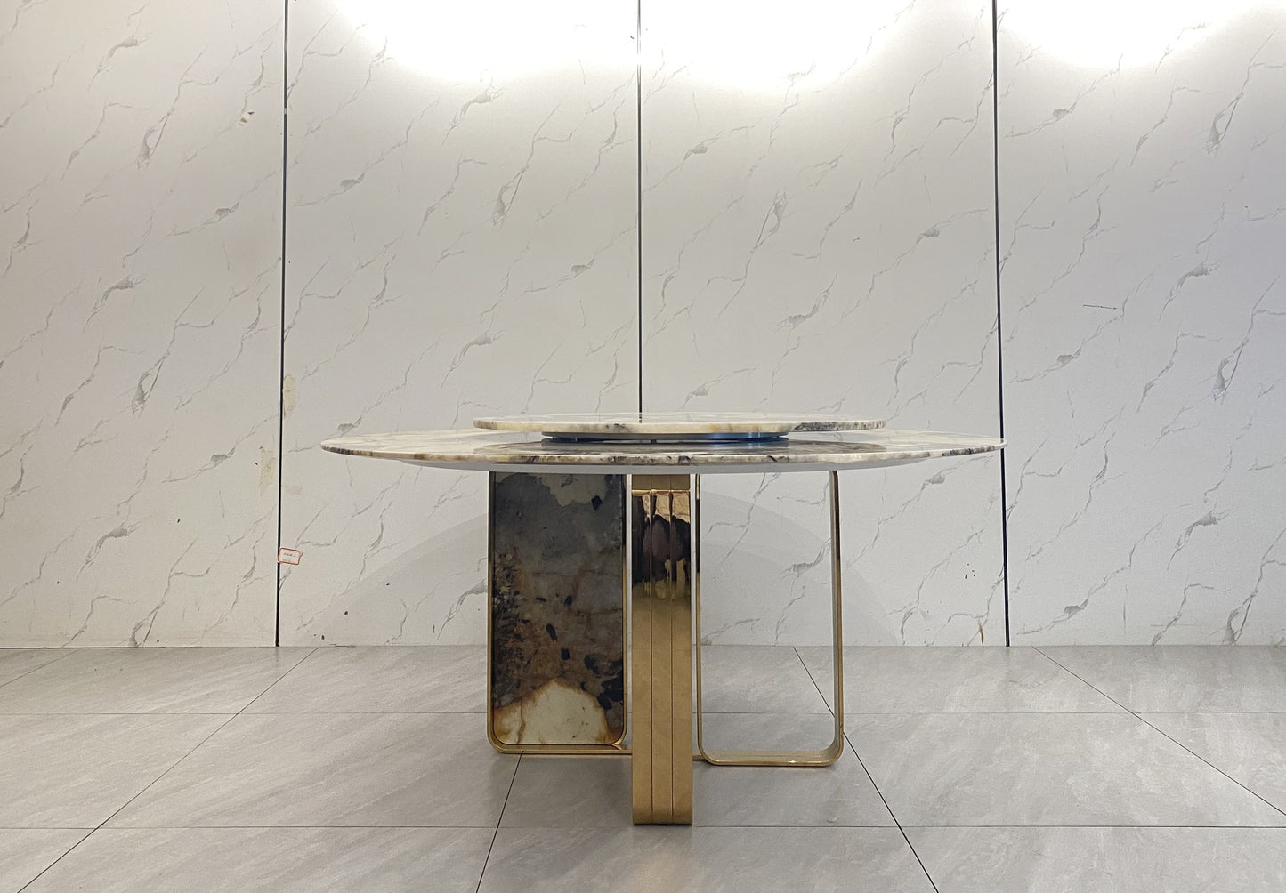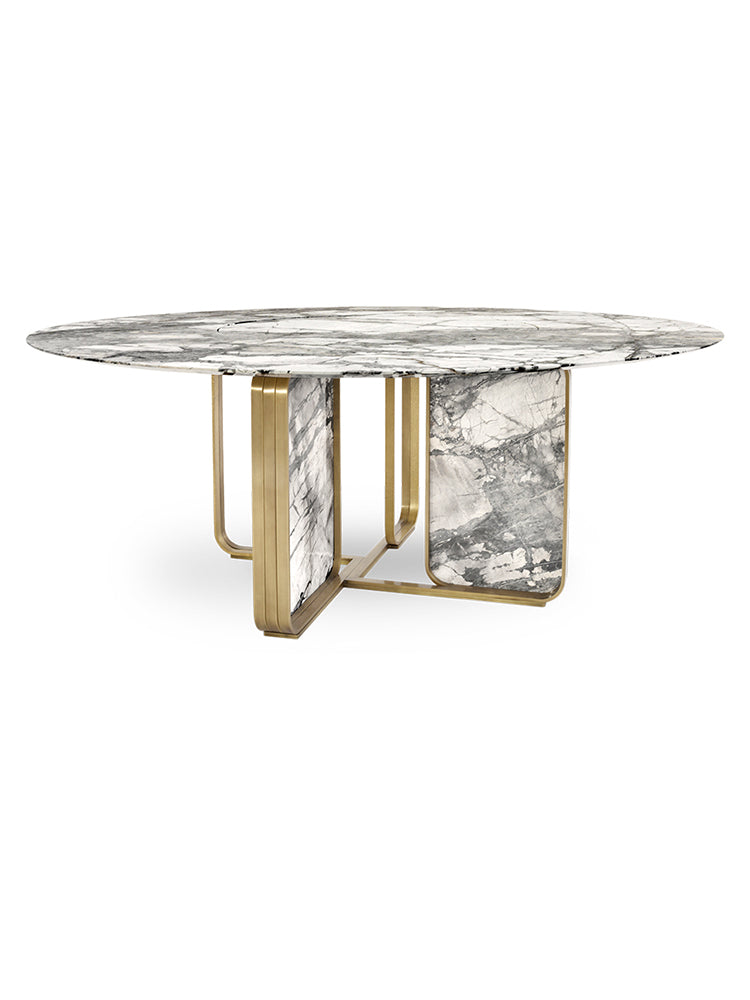 description | The uniqueness of round tables Nova is represented by the brass base that envelops the marble slabs like a ribbon, enhancing the natural veins of the stone. The metal parts, that are shaped in a very precious way, are proposed both in shiny and matt finishes and some of them are decorated by hand with a refined three-dimensional effect. Besides the round table, that can be selected with lazy susan, exists also the rectangular version. |