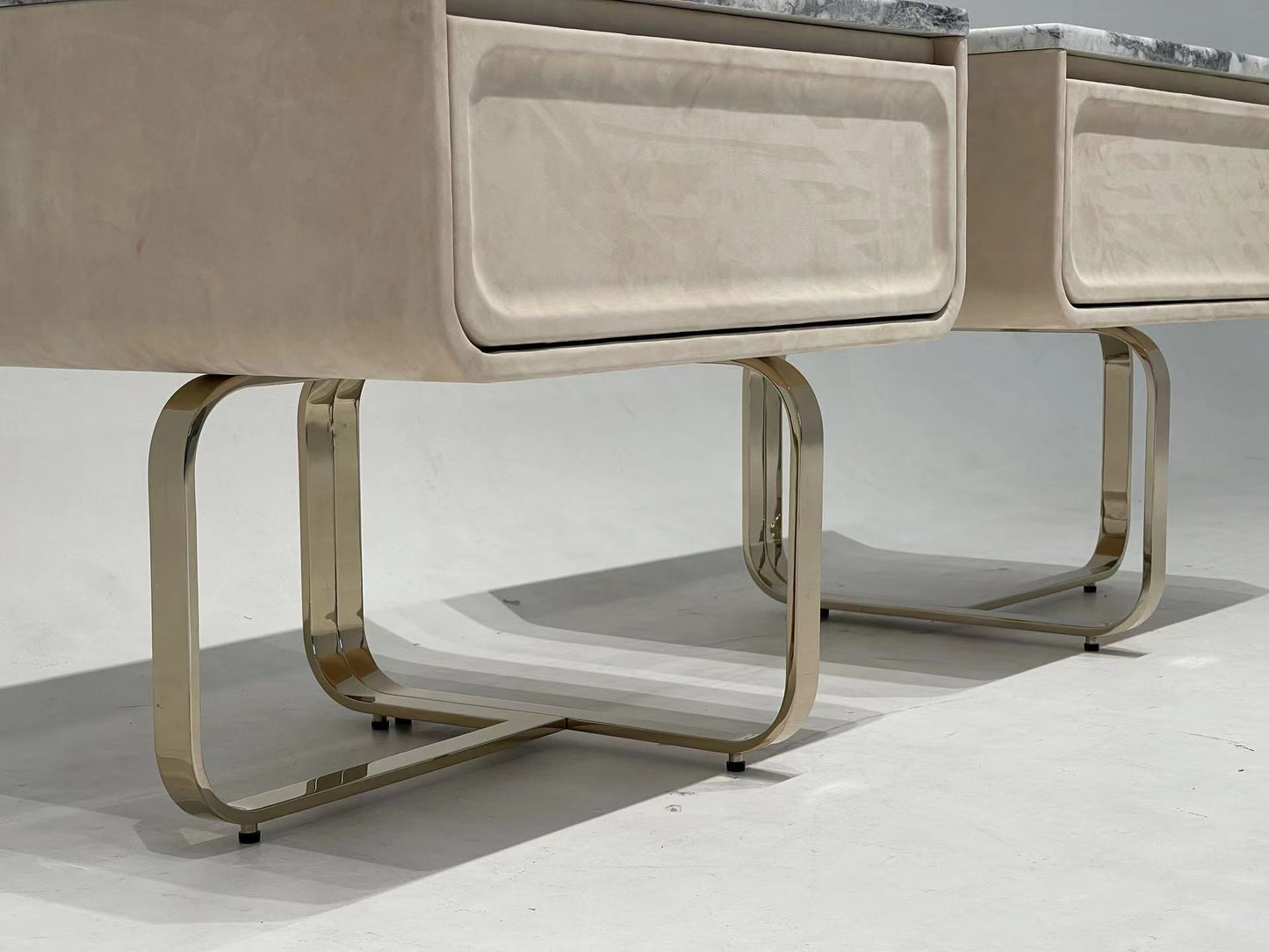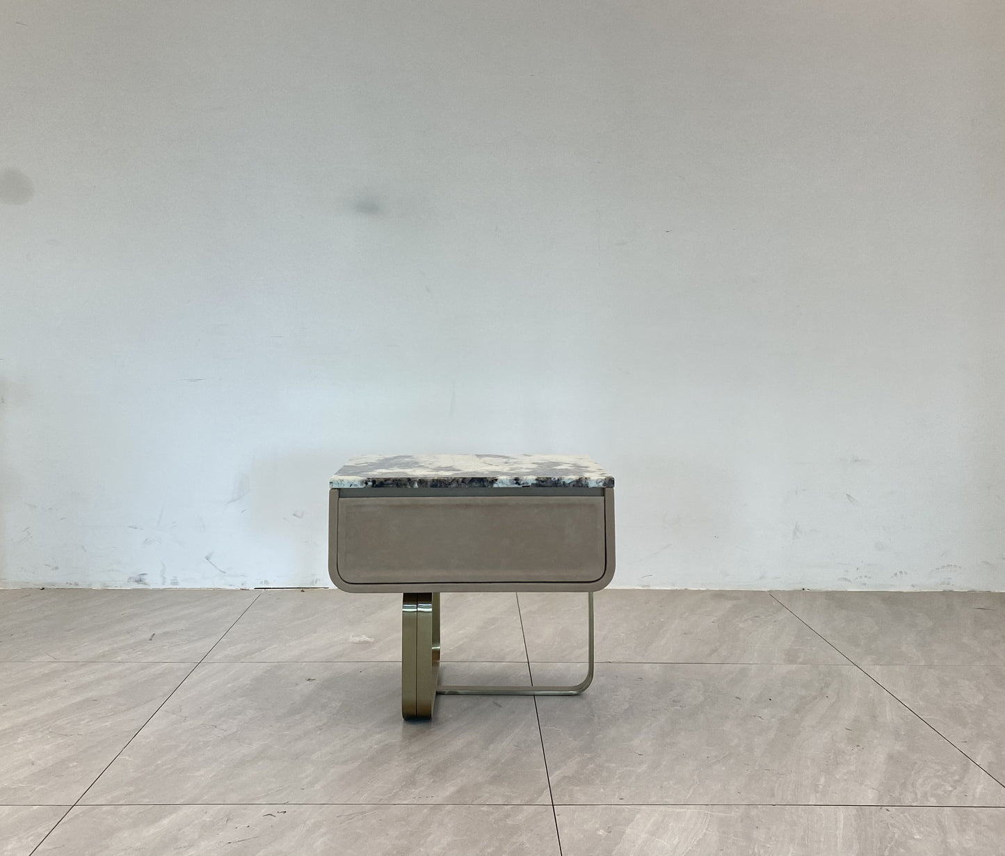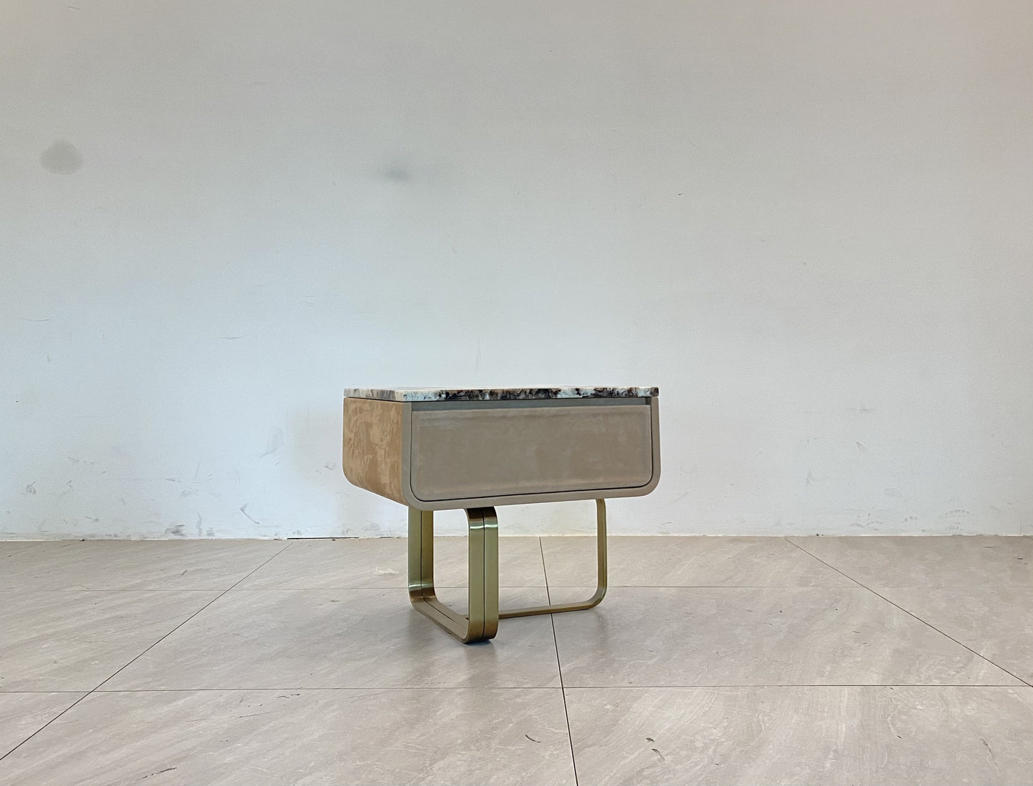 description | In night table Nova the care to details is visible on the drawer decorated with a three-dimensional frame upholstered with soft leather. An exclusive feature of this item is the right and left version where the metals are placed on the opposite side under the structure. The top is inmarble while the internal side of the drawer is made up of eucalyptus wood. |