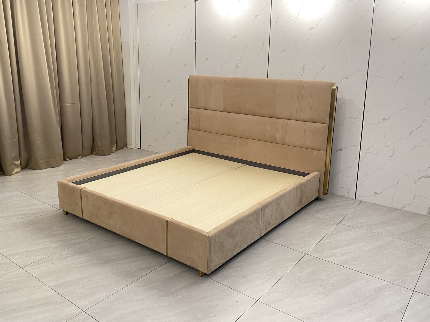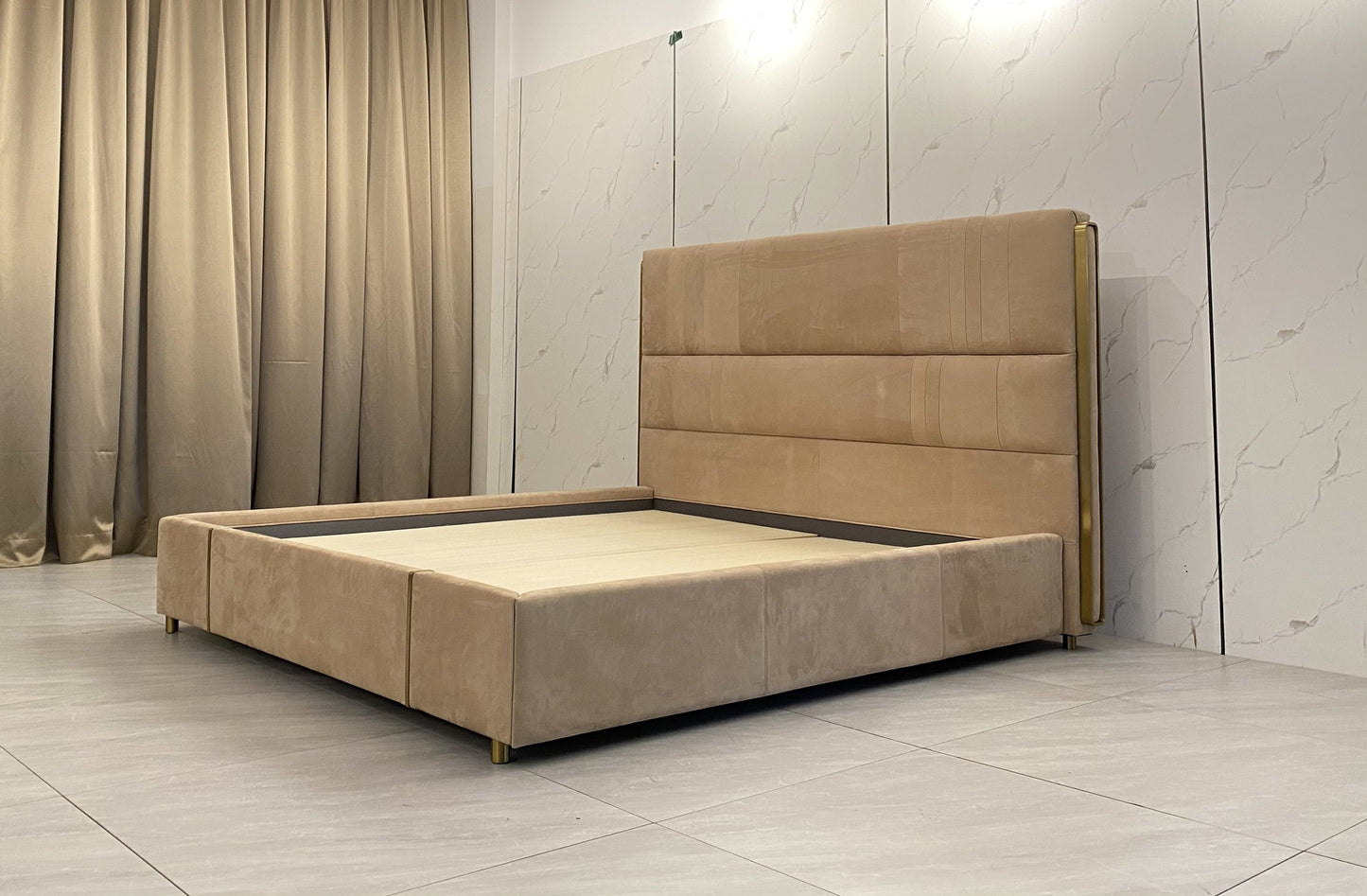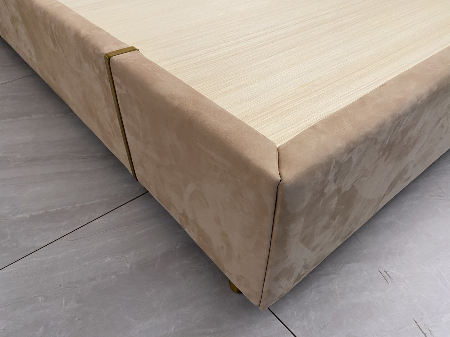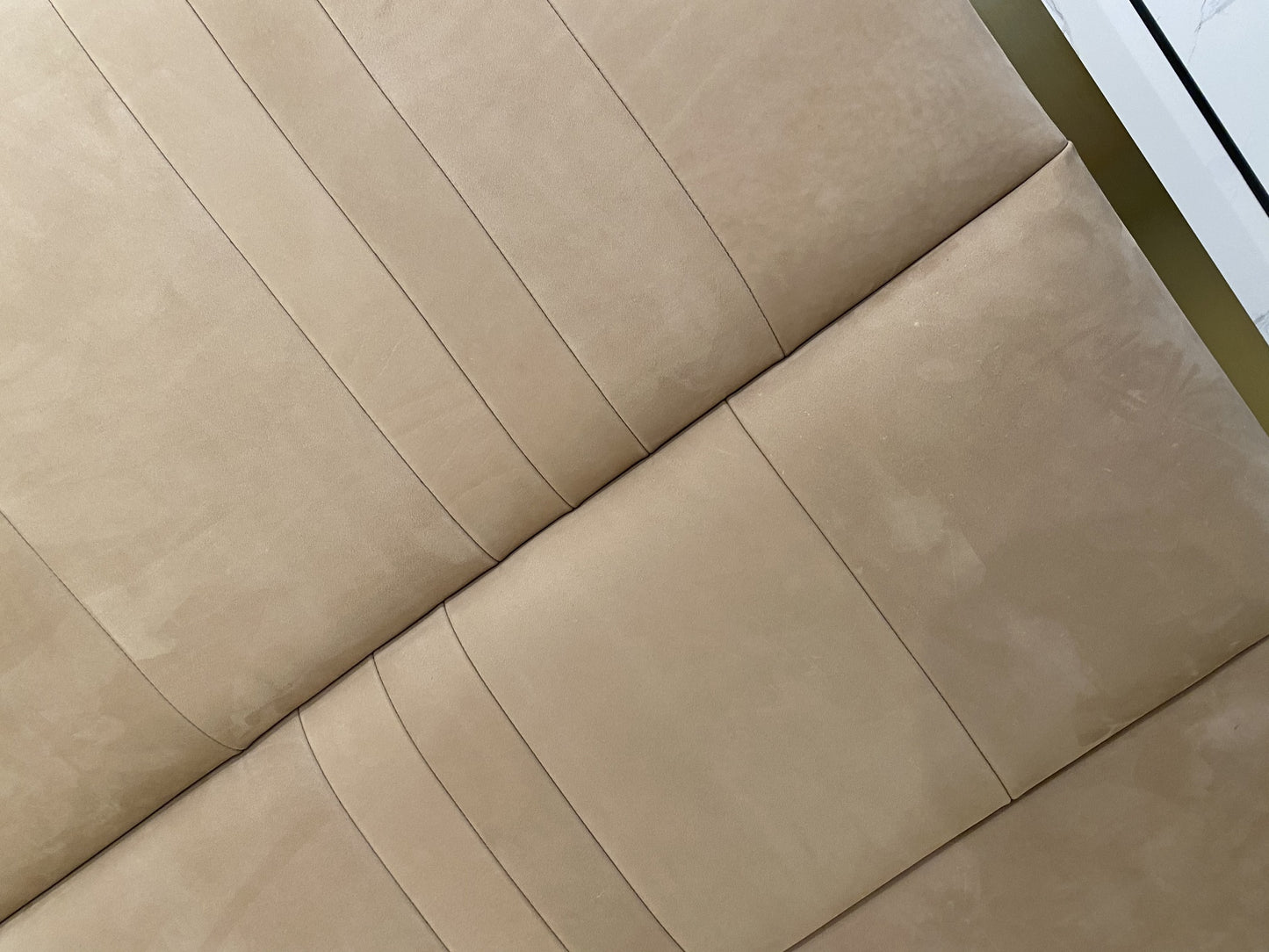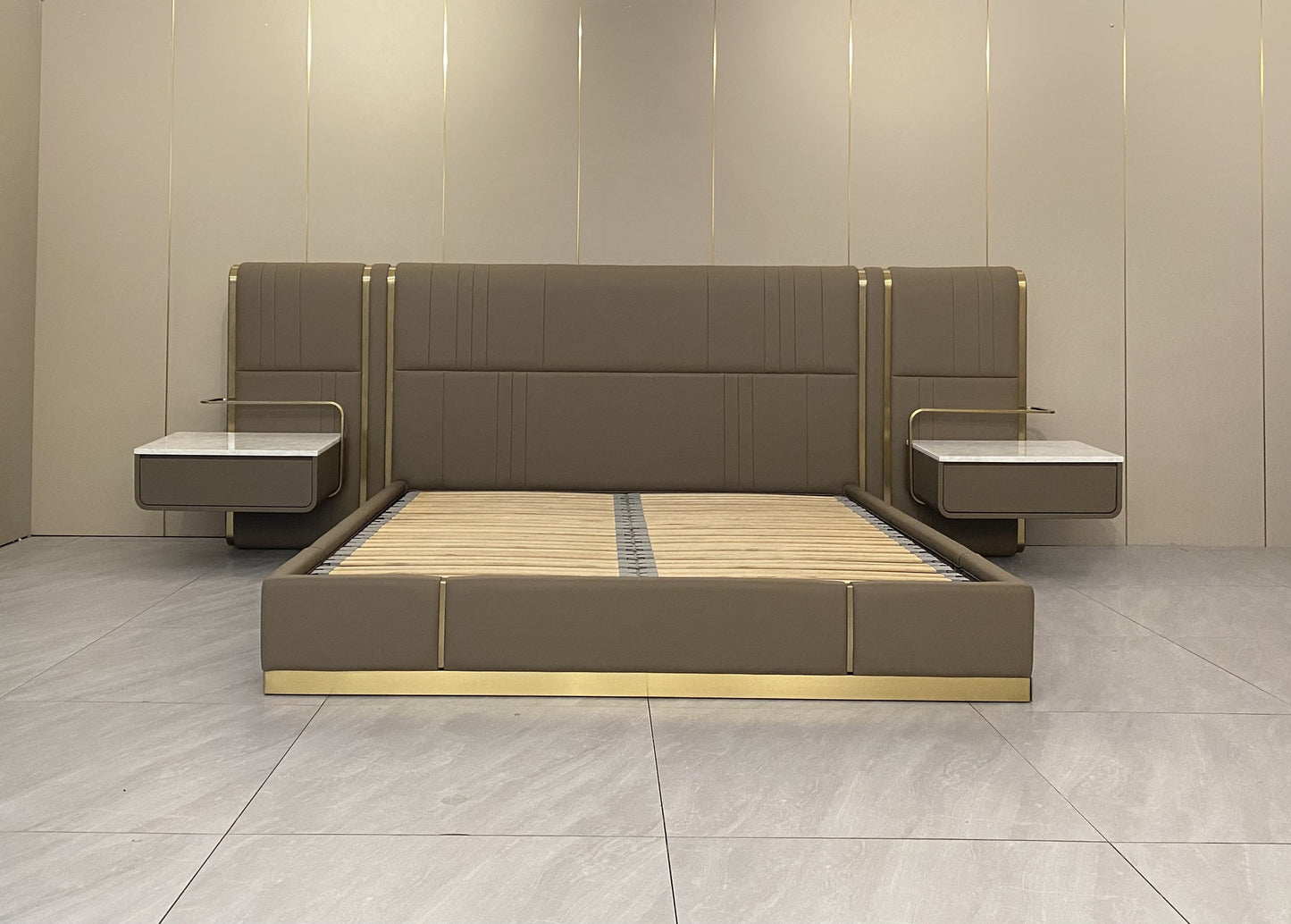 description | Novabed presents headboard and siderails upholstered in leather or fabric where vertical stitchings alternate with parallel seams while on lateral sides of the headboard metal details recall those that characterize the other items of this collection. This bed besides being available with standard headboard, it is available with a wider headboard that envelops the night table. |