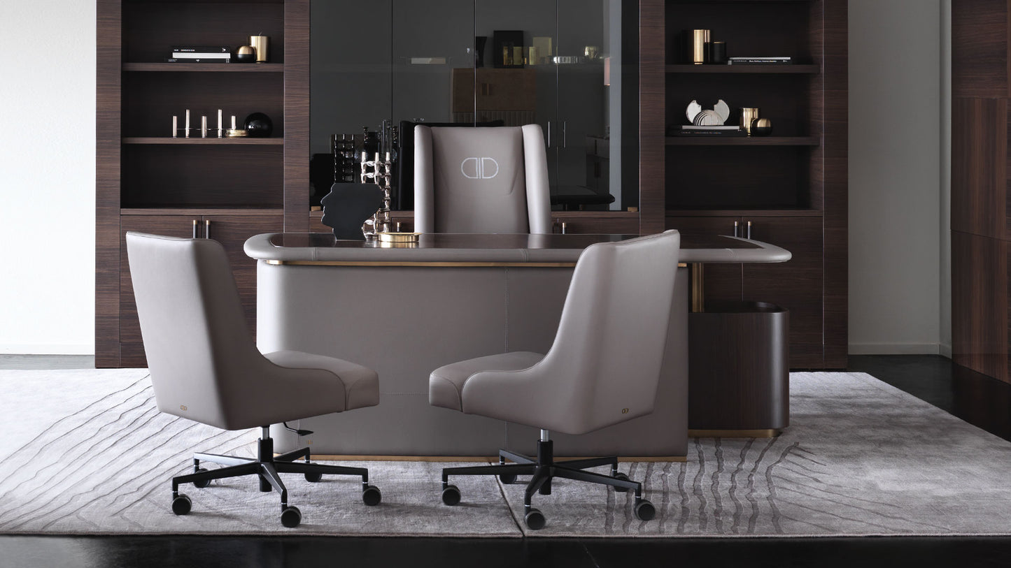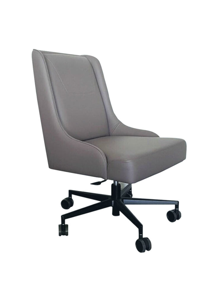 description | Curved plywood structure. Padded with multi-density rubber, seat with 6 cm elastic belts. Base with rubber self-braking casters. Upholstery in fabric or leather. |