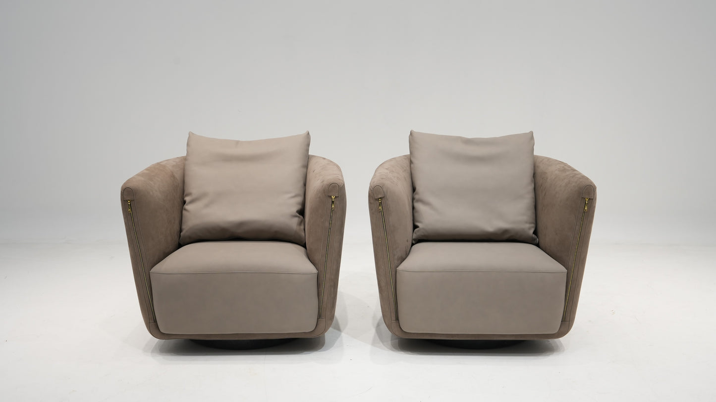Description | A shapely shell made of rigid structural polyurethane and then upholstered in saddle hide accommodates the soft, goose down filled seat |