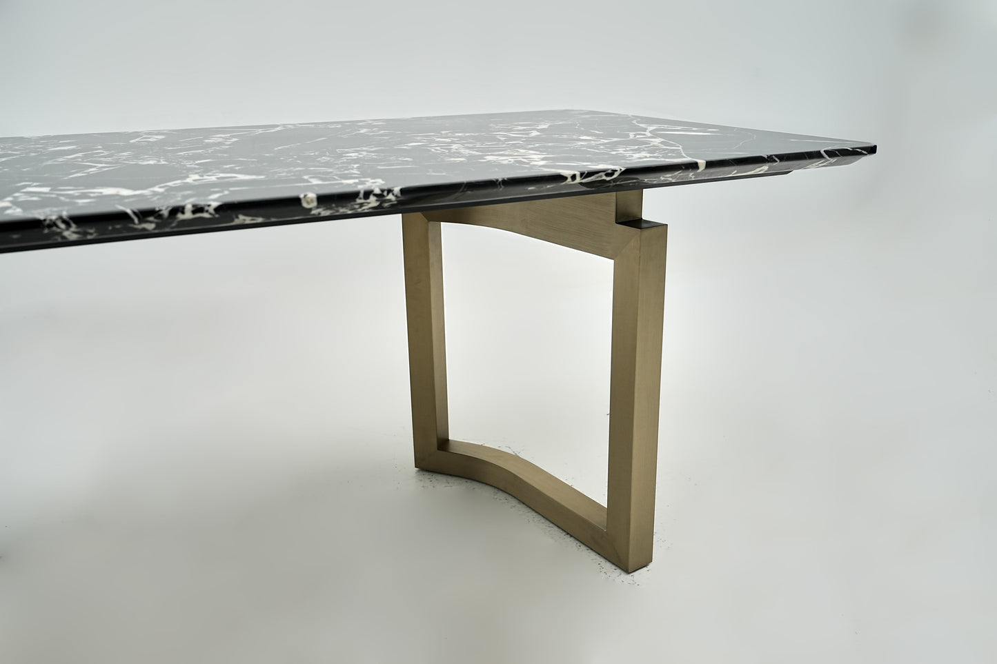 The Ford table brings together classic elements and unconventional, modern architecture. The top, available in both round and rectangular versions, sits upon asymmetric steel legs that have been folded and cut by hand to create a bold, eye-catching effect. Available in the various woods and marbles of the collection and featuring a matt finish, it goes beyond mere functionality to become a distinctive statement piece. With its large dimensions, it is ideal for large dining rooms, living zones and meeting rooms. |