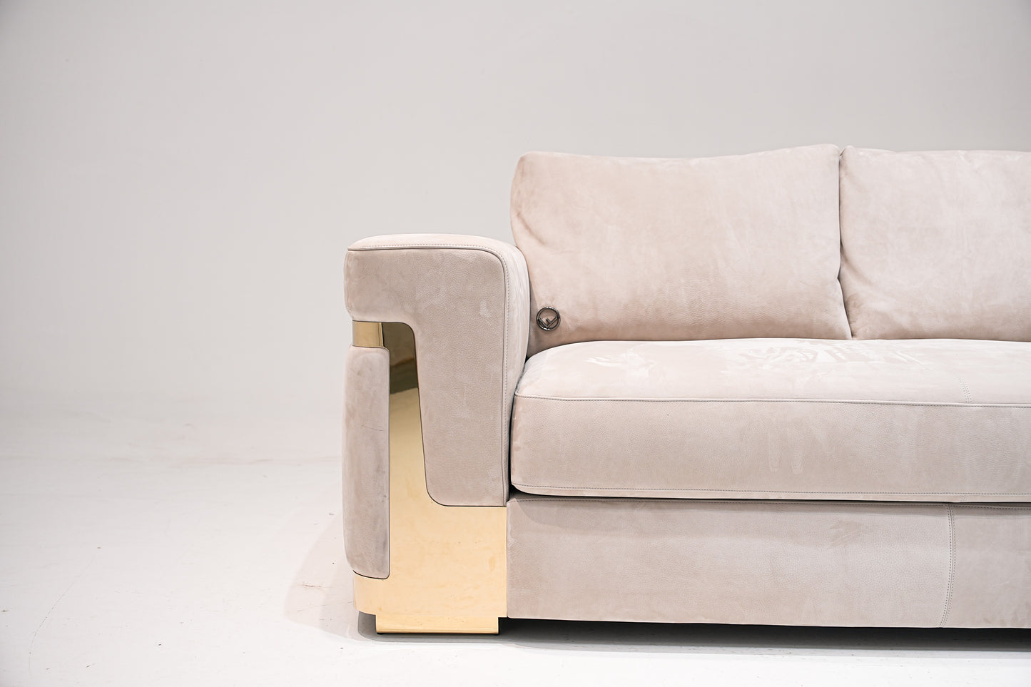 Description | The band of quilted leather with the all-over FF logo outlining the backrest cushions forms the feature of the new Ray sofa. Sporting clean-cut lines, this elegant sofa with removable covers can be customised down to the smallest detail. The metal plating embracing it, for example is available in steel and gun-metal, Bronze Shadow, polished brass or Palladium finishes. |