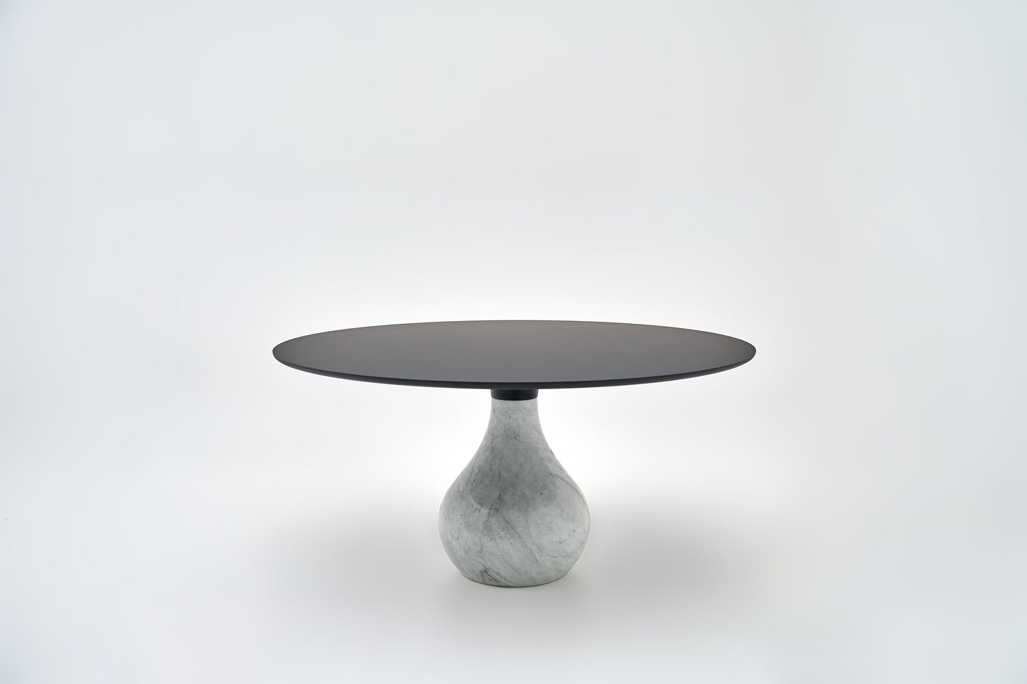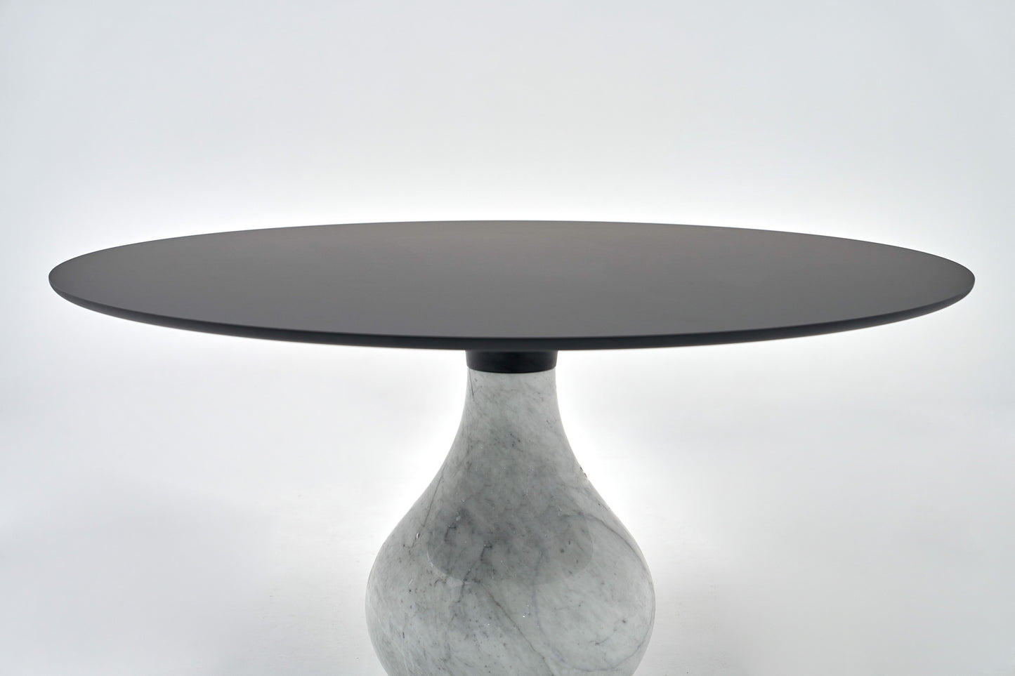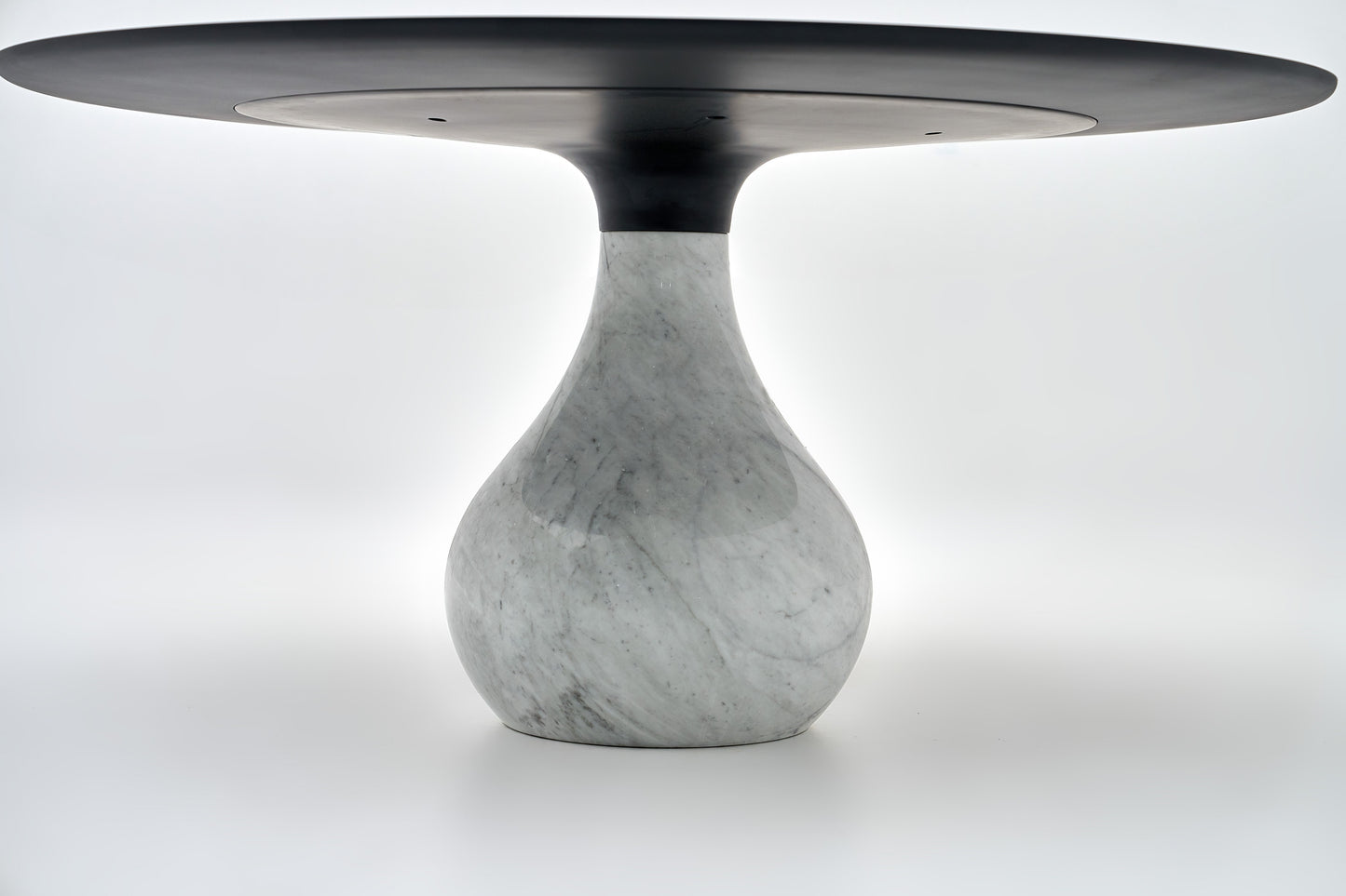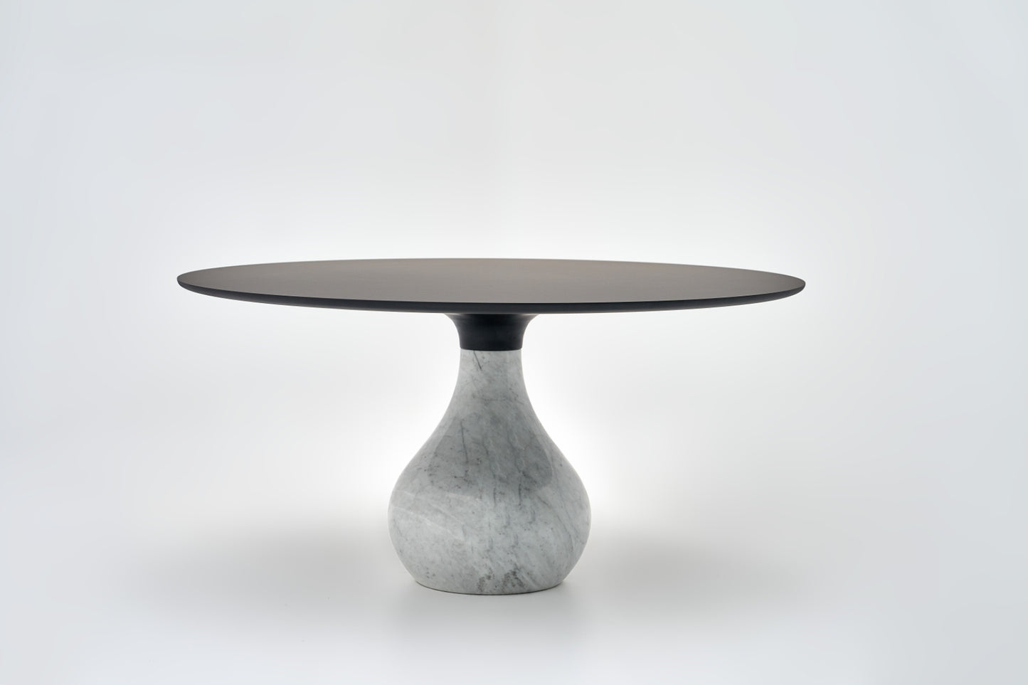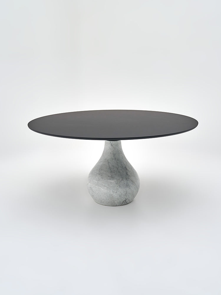 The deceptively simple shape of the Aqua table conceals the incredible craftsmanship that is used to achieve the impressive challenge of designer Fabrice Berrux - making a marble base shaped like a drop of liquid.