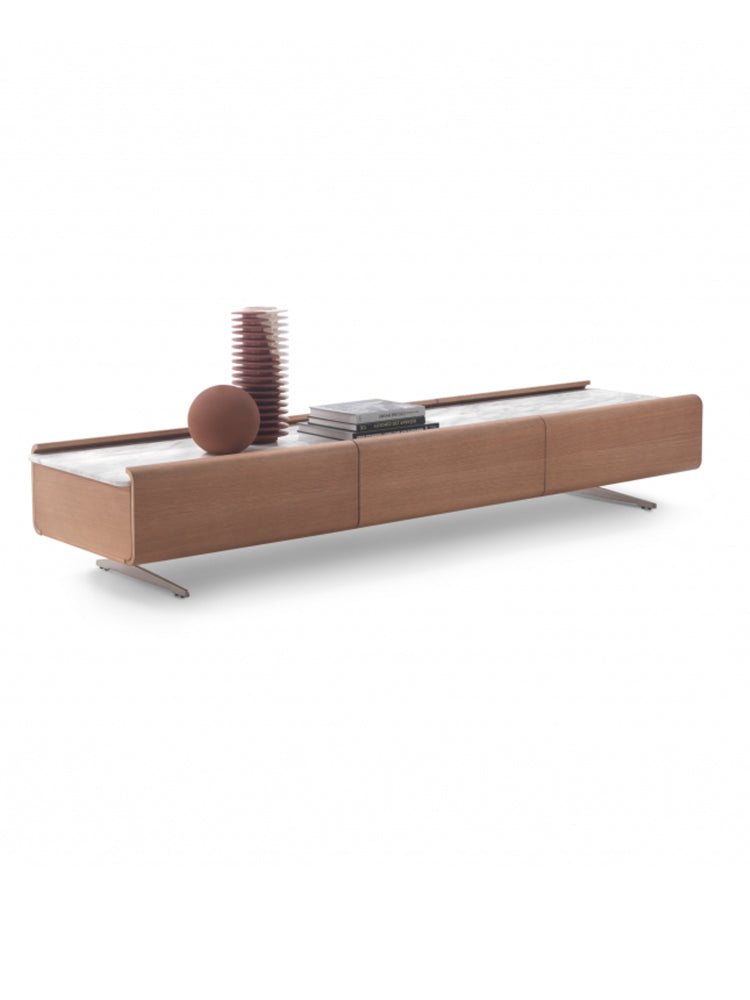 description | Designed to furnish the living room and dining room with tasteful elegance, the Earl family of containers includes low cabinets with drawers and a tall piece with hinged doors, all appointed differently inside. Differing in their proportions and how they are used – TV console, cabinet, long console – the Earl storage units share unpretentious minimalist lines that do not, however, conform to a principle of simplification, but rather to a subtle quest for balance and highly sophisticated formal solutions. Signature feature of the Earl family is the singular drawer-front design. Veneered in luxurious wood, it has a curved upper edge that seems to frame the top, available in different types of wood, or enhanced with a top in a selection of types of marble. All of the pieces in the Earl family are the same on the front and back, so they can also be used as room dividers. |