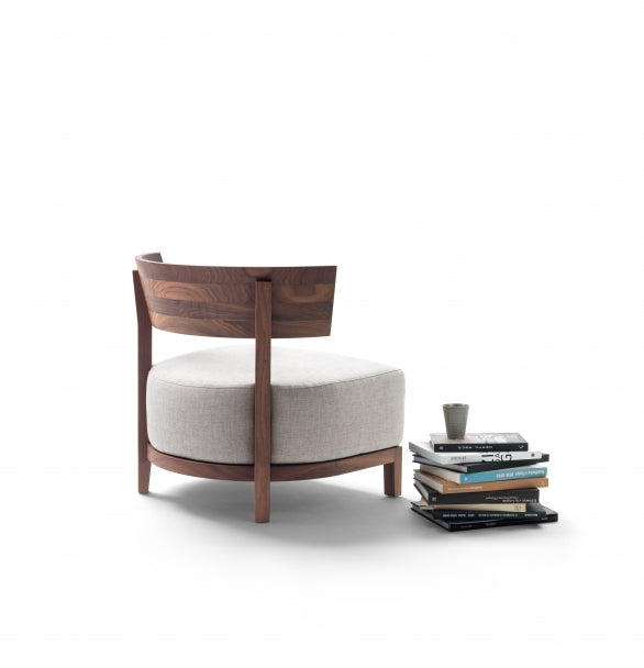 description | Designed in the year 2000, its intrinsic elegance has made the Thomas armchair one of the absolute best-sellers in the Flexform product line. Padded in polyurethane foam and Dacron, the substantial seat cushion rests on a sophisticated curved wood base. The streamlined yet functional semi-circular seat back is made of premium Canaletto walnut or ash stained in different shades, or in a glossy lacquer finish in a wide range of sophisticated colors. With its graceful lines and compact proportions, the Thomas armchair is a veritable all-around piece that can easily be paired with any of the sofas in the Flexform collection. |