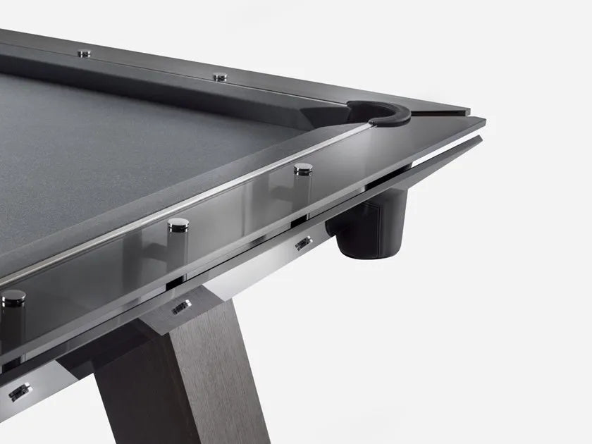 description | Filotto Wood gives a new warm guise to the classic all glass 8ft pro billiard table. This edition features Oak legs complemented by a glass frame that has a thin adjustable and divisible steel frame, supporting an Italian slate base. Handcrafted in Italy, the Oak legs are available in three different finishes. |