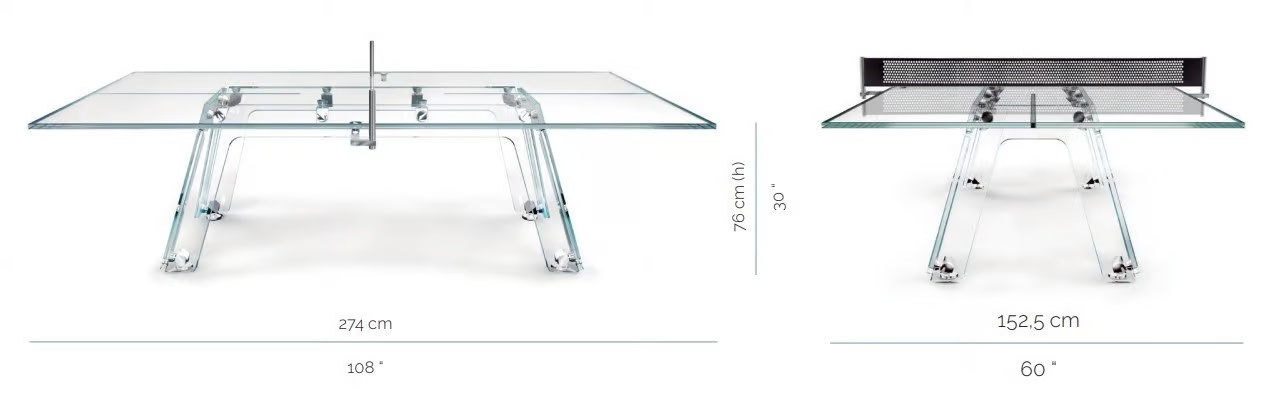 description | The Lungolinea Classic is an Olympic size ping pong table crafted from low-iron glass, which gives the piece a crystal-clear aesthetic that is strong and durable. With a modern aesthetic, this game table is carefully designed to ensure high-performance playing qualities. The Classic edition features beautiful silver or black nickel chrome connecting joints along with a premium laser-cut design black Alcantara net. |