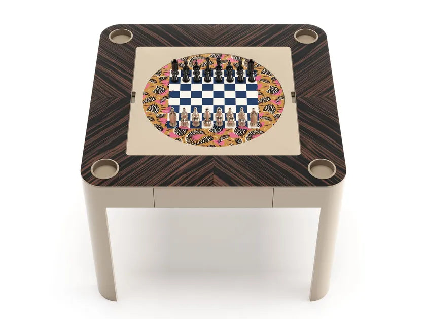 description | Enigma is an apparently simple table hides secrets ready to be revealed. A product that changes, but always remains the same. This multigame table allows you to play chess, backgammon, cards, domino, mahjong, carrom and dices. Enigma is a multigame table that thanks to a double face top allows you to have your favourite games close at hand, in a single product. Enigma multigame table is provided with 4 drawers where is possibile to store all the accessories for different games. The simple yet modern structure is completely lacquered. The top rail is enriched with veneer wood. |