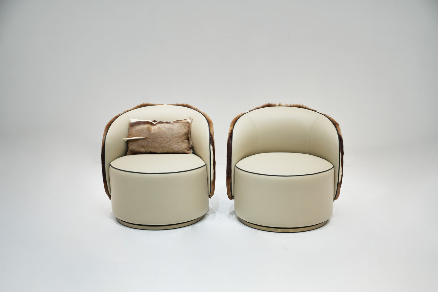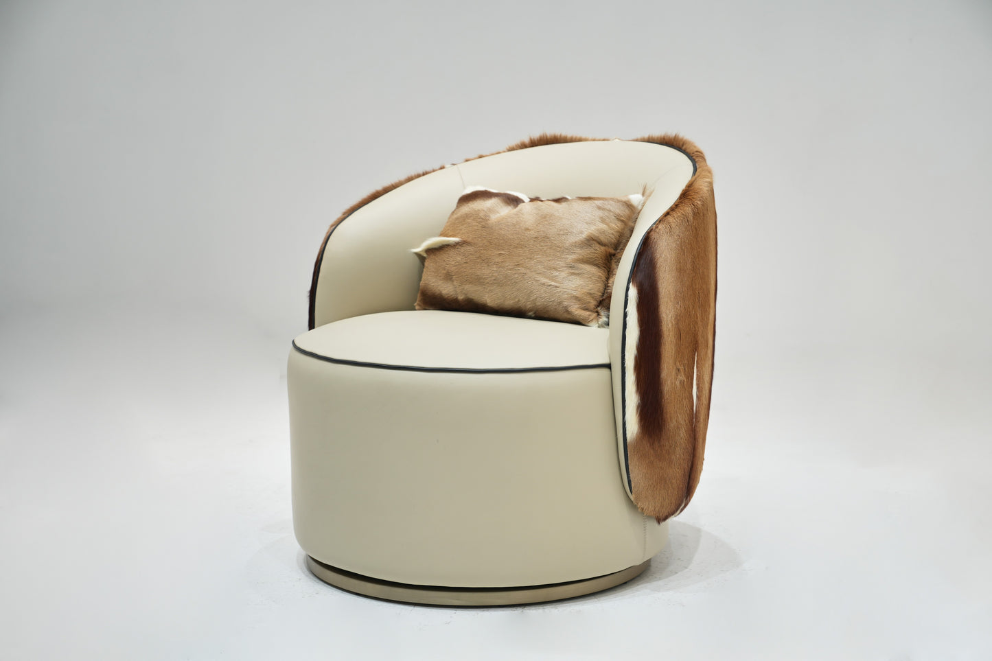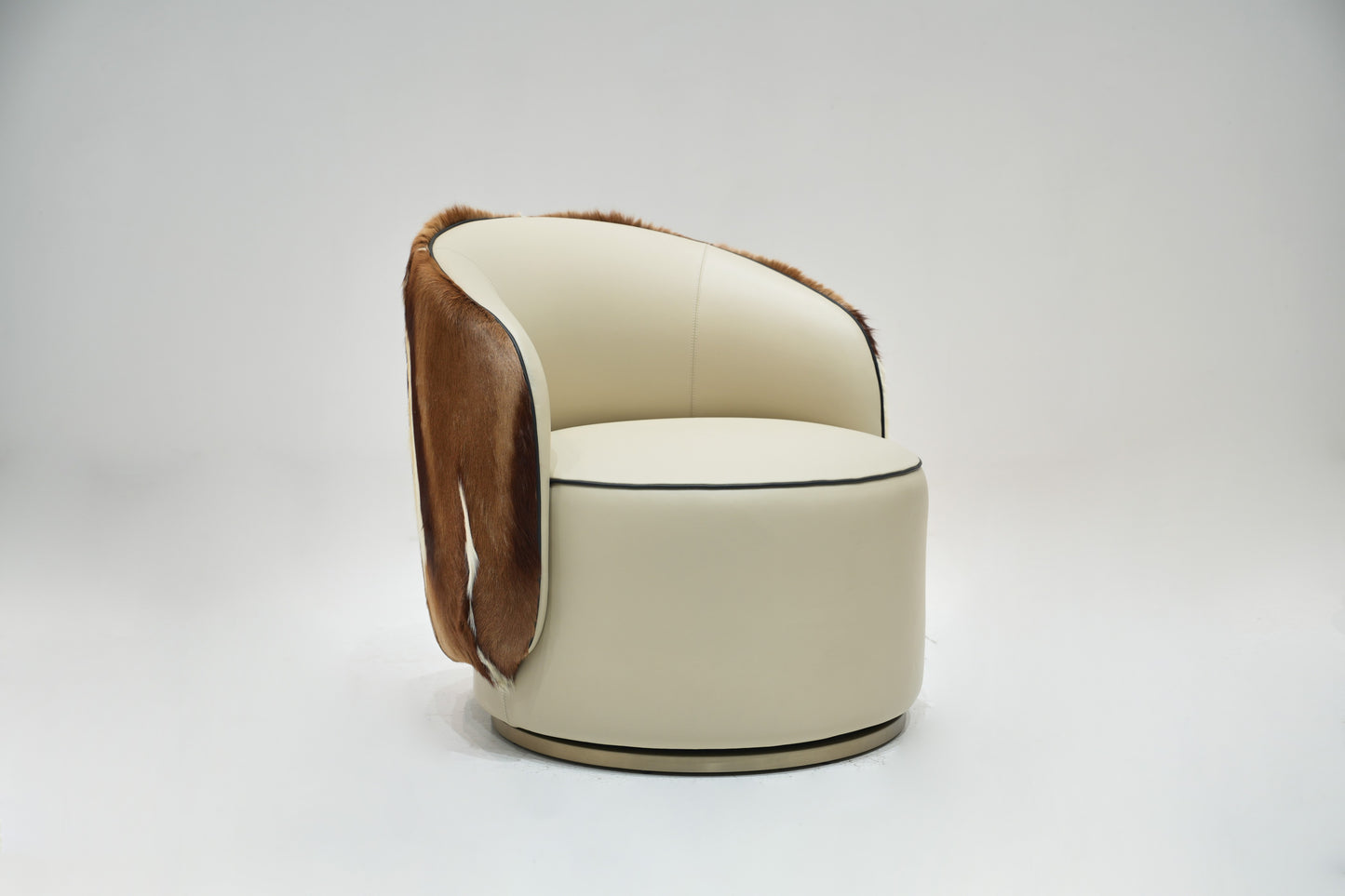 Description | The Annabelle armchair combines a rounded back in brushed metal with a swivel base and a cocooning design that fosters conversation and relaxation. Its audacious yet harmonious form features upholstery in a palette of neutral tones, including a gazelle option for a truly exclusive addition to your living room. |
