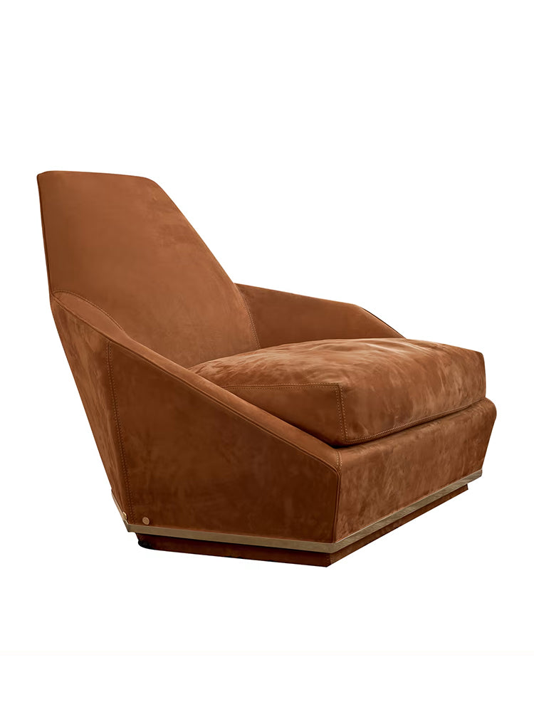 description | Wood frame with elastic bands, covered in high-density, multi-thickness polyurethane foam. Seat cushions in sterilised goose down with insert in multi-thickness polyurethane foam with reinforcement in “Visco Soft”. Wood base covered in the same material as the upholstery. Iron finishing ring on the base available in the finishes: Black Rose gold, bright shaded brown, bright light gold, matt Champagne gold, bright chrome, bright black chrome, matt satin bronze, bright pink gold, matt pink gold. Given the particular process, the leather or fabric cover of the frame is not removable, but the fabric seat cushion cover can be removed. |