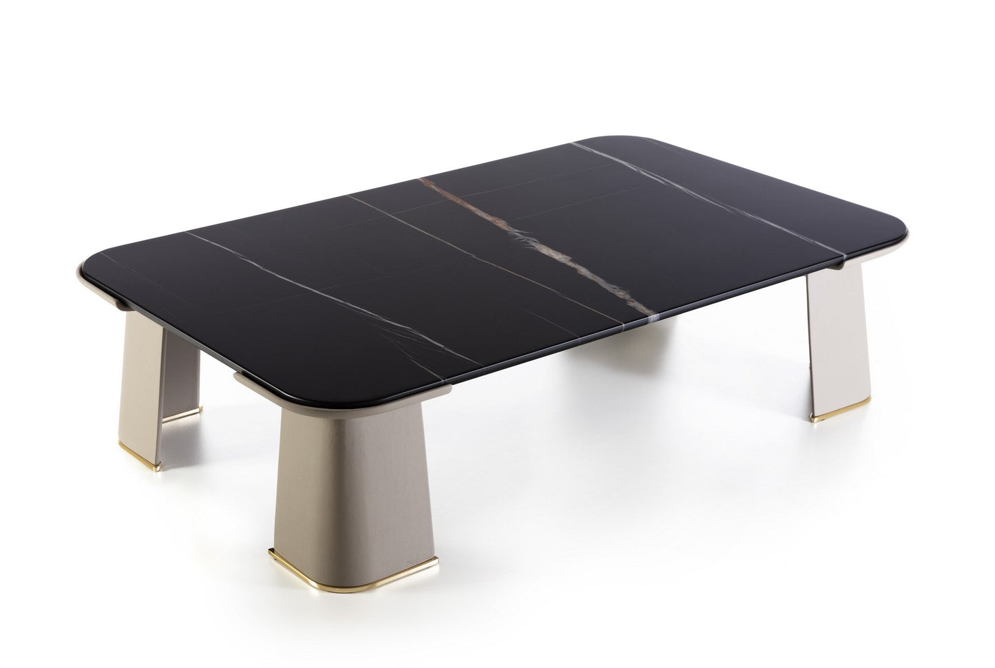 description | Service table with 4 foam-covered legs upholstered externally in leather from the catalogue and internally covered by curved metal sheet in the finishes: Satin nickel, Bright shaded brown, Black Rose gold, bright light gold, matt Champagne gold, bright chrome, bright black chrome, matt satin bronze, bright pink gold, matt pink gold. To complete the leg, the base is enhanced with a metal foot in the same finish as the curved plate. The top is in marble 20 mm with double bullnose: White Carrara marble, Imperial Brown marble, Azul Macauba marble, Sahara Noir marble (glossy and matt polyester finish), Dover White marble, Panda White marble, Guatemala Green marble, Corteccia marble, Port Saint Laurent marble, Red Levanto marble, Bardiglio Nuvolato marble, Elegant Brown marble, Shale Rosewood marble, Emperador Dark marble, Silver Wave marble, Agatha Black marble, Frappuccino marble, Calacatta marble, Fusion Light marble, Patagonia marble, Explosion Blue marble, Fusion Multicolor marble, Juliet Quartz marble. |