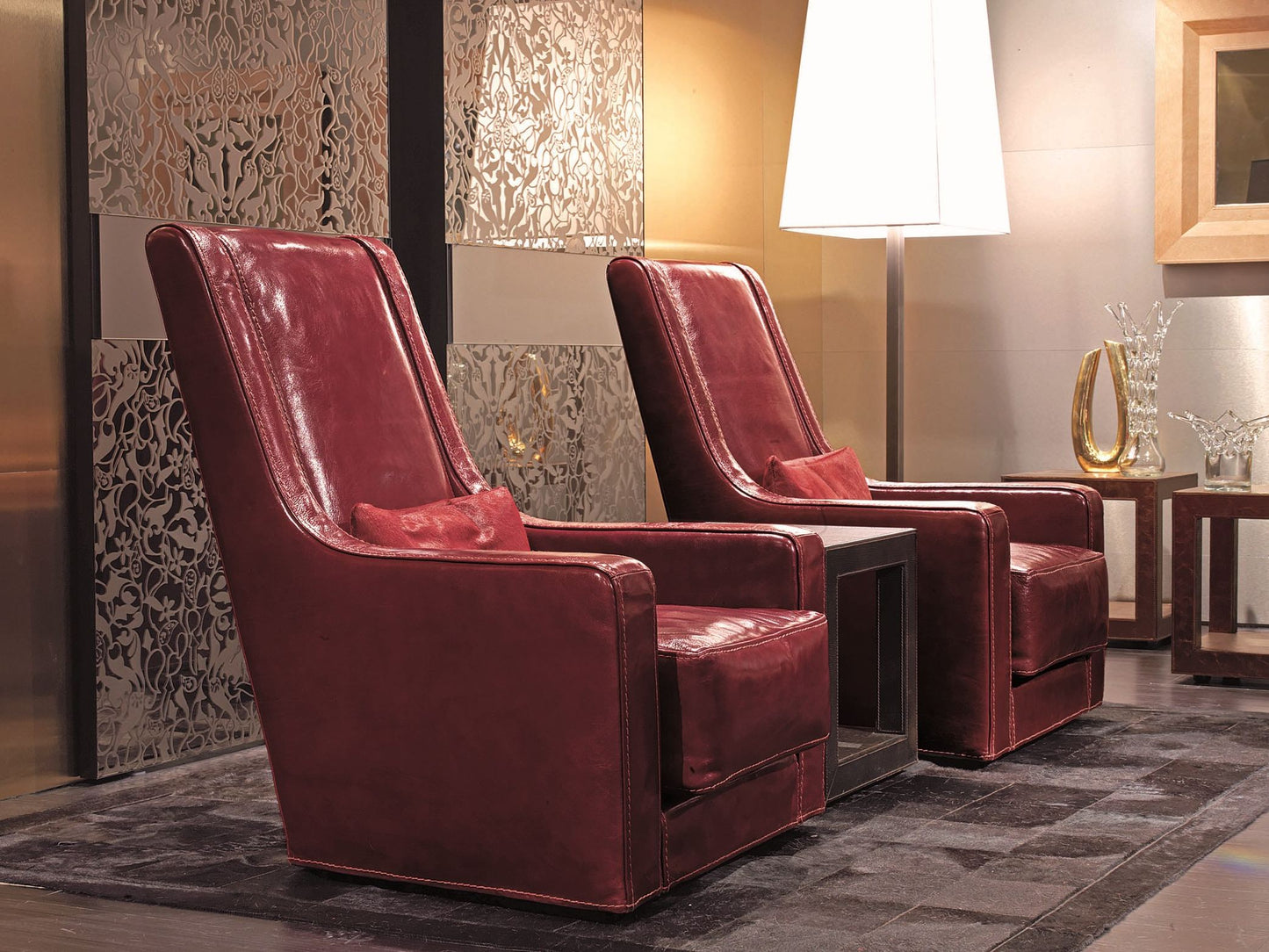 description | Baron - Fir bearing frame with elastic webbing, covered with high-density polyurethane foam in different thicknesses. Seat cushions with sterilized goose down and insert of medium-density polyurethane foam. Anatomically-designed backrest cushions of sterilized goose down for greater comfort. Completely removable fabric upholstery. The high armchair has a 360 degree swivel base. |