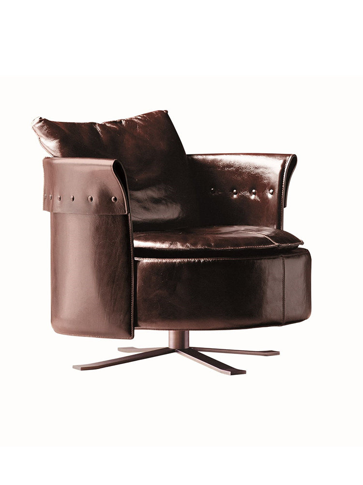 description | Iron backrest frame assembled on a pine seat with elastic webbing, covered with high-density polyurethane foam in different thicknesses. Seat cushion of medium-density polyurethane foam and Dacron. Anatomically-designed backrest cushions of sterilized goose down for greater comfort. The buttons on the backrest are covered with the same material as the upholstery, or, alternatively, with “Swarovski” crystals. Given the special processing, the leather upholsteries are not removable. Base of ground metal with matt satined bronze finish. |