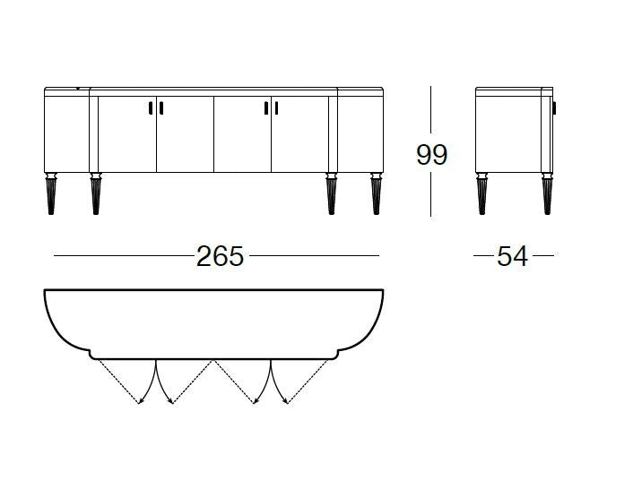 description | Low cabinet with wood structure in the finishes: glossy/matt ebony, glossy/matt Canaletto walnut, glossy/matt Sycamore frisè. Curved sides covered in leather as in our sample set. Shaped top in the finishes: matt ebony with inlay, Marble 20 mm thickness with half-bullnose rounded edge: Sahara Noir marble (polyester finish), Dover White marble, Panda White marble, Guatemala Green marble, Corteccia marble, Port Saint Laurent marble, Red Levanto marble, Bardiglio Nuvolato marble, Elegant Brown marble, Shale Rosewood marble, Emperador Dark marble, Silver Wave marble, Agatha Black marble, Frappuccino marble, Calacatta marble, Fusion Light marble, Patagonia marble, Explosion Blu marble, Fusion Multicolor marble, Juliet quartz marble. Edge in metal in the same finish as the legs or covered in leather as in our sample set.Legs in metal in the finishes: bright shaded brown, bright light gold, matt Champagne gold, bright chrome, bright black chrome, matt satined bronze, Black Rose gold. Grooved metal handles. |