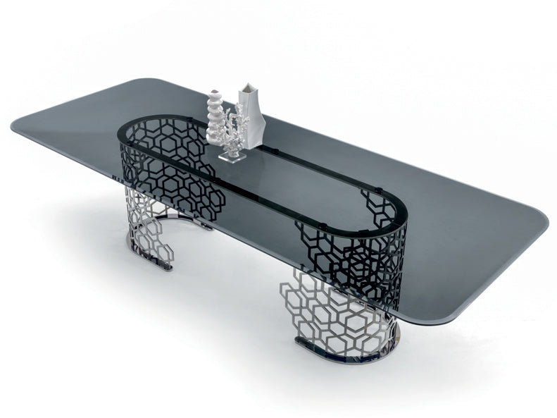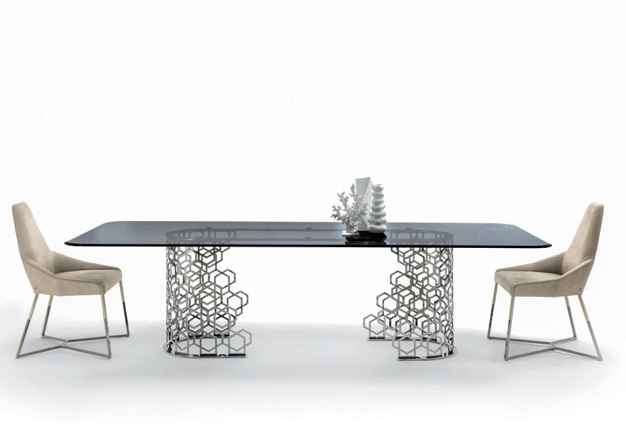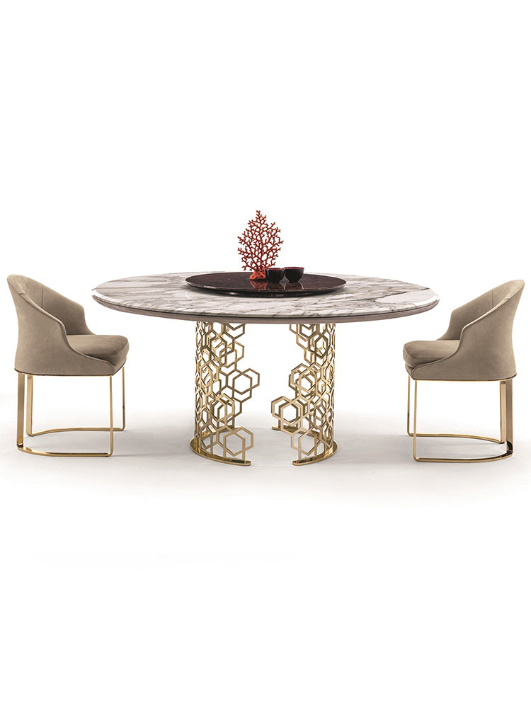 description | Manfred-The base of this dining table is an arc-shaped polished metal with a laser-cut "Sequence" pattern.Structural surface treatment: glossy light gold; matte champagne gold; glossy chrome plated; Glossy black chrome plated; matte matte bronze.Desktop treatment: 10 mm bronze transparent tempered crystal or 12 mm smoky gray; marble with a thickness of 20 mm, with chamfering: Guatemala green marble; tree pattern "Corteccia" marble; Port Saint Laurent marble; Rosso Levanto marble; Bardiglio Nuvolato marble; Elegant Brown marble; Palissandro Oniciato marble; Emperor Dark marble; Silver Wave marble; Agatha Black Marble; Frappuccino marble; Calacatta Gold Marble. When marble is used on the desktop, the bottom layer will be covered with the leather material in the sample series. For round tables, there are also turntables available for purchase. The surface treatments that can be selected are: wood, sample series color glossy paint; glossy/matte ebony; glossy/matte Canaletto walnut; glossy/matte Luxury teak sandalwood; glossy walnut root wood; marble that can also be used for desktop. |
