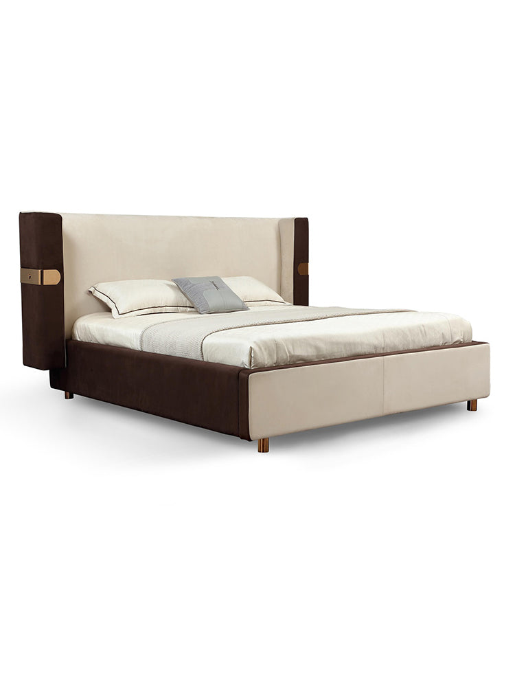 description | The structure is in wood covered in medium-high density polyurethane foam. The side of the headboard facing the wall is upholstered in cloth with the Longhi logo in the same colour as the bed upholstery, as a standard feature. The headboard is completed with an elegant metal ring available in the following finishes: bright shaded brown, Black Rose gold, bright light gold, matt Champagne gold, bright chrome, bright black chrome, matt satin bronze, bright pink gold, matt pink gold. The base can accommodate: - the fixed mattress base structure with height-adjustable wood slats. - sommier spring base for bed bases fitting fl ush with base, - a convenient storage container that opens with two movements to maintain the mattress in a fl at position. The bottom of the container is in laminated wood with a silky surface finish. - a pair of wireless remote controlled electrified mattress bases, with motors integrated directly into the structure, which balance the amortised wood slat structure. Dedicated mattresses must be used with this type of bed base. Given the special manufacturing process, the bed’s fabric or leather upholstery is NOT removable. |