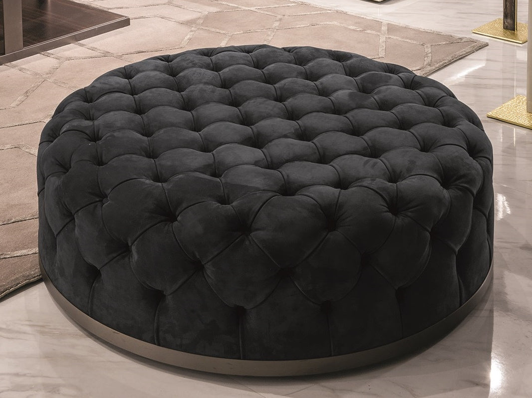 description | Milton is a round leather pouf At the base, there is a metal border in the finishes: - bright light gold, - matt Champagne gold, - bright chrome, - bright black chrome, - matt satin bronze, - bright pink gold, - matt pink gold. |