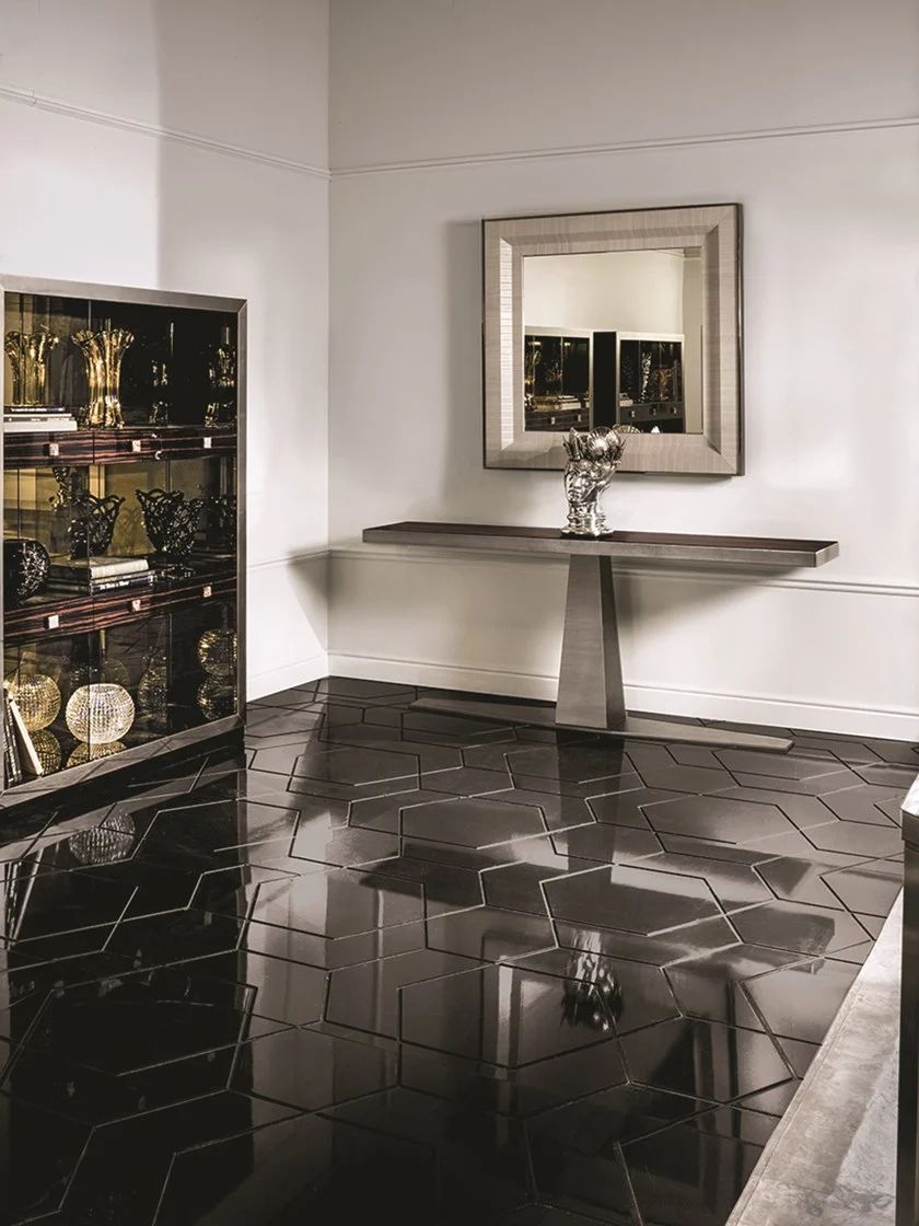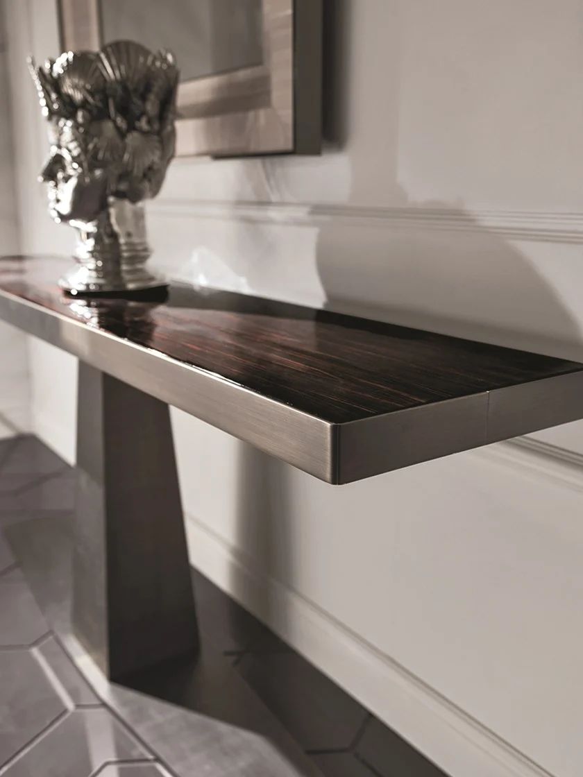 description | This porch table is assembled from laser-cut polished metal. Structural surface treatment: glossy light gold; matte champagne gold; glossy chrome plated; glossy black chrome plated; matte matte bronze. Desktop treatment: 8mm black lacquered crystal; 6mm bronze or smoky gray mirror glass; Elegant Brown marble; Palissandro Oniciato marble; Silver Wave marble; Agatha Black marble; Frappuccino Marble; Calacatta Gold Marble; Emperor Dark Marble; Glossy ebony; glossy Canaletto walnut; Matte ebony; matte Canaletto walnut; Matte rattan wood; Glossy ivory white paint. |