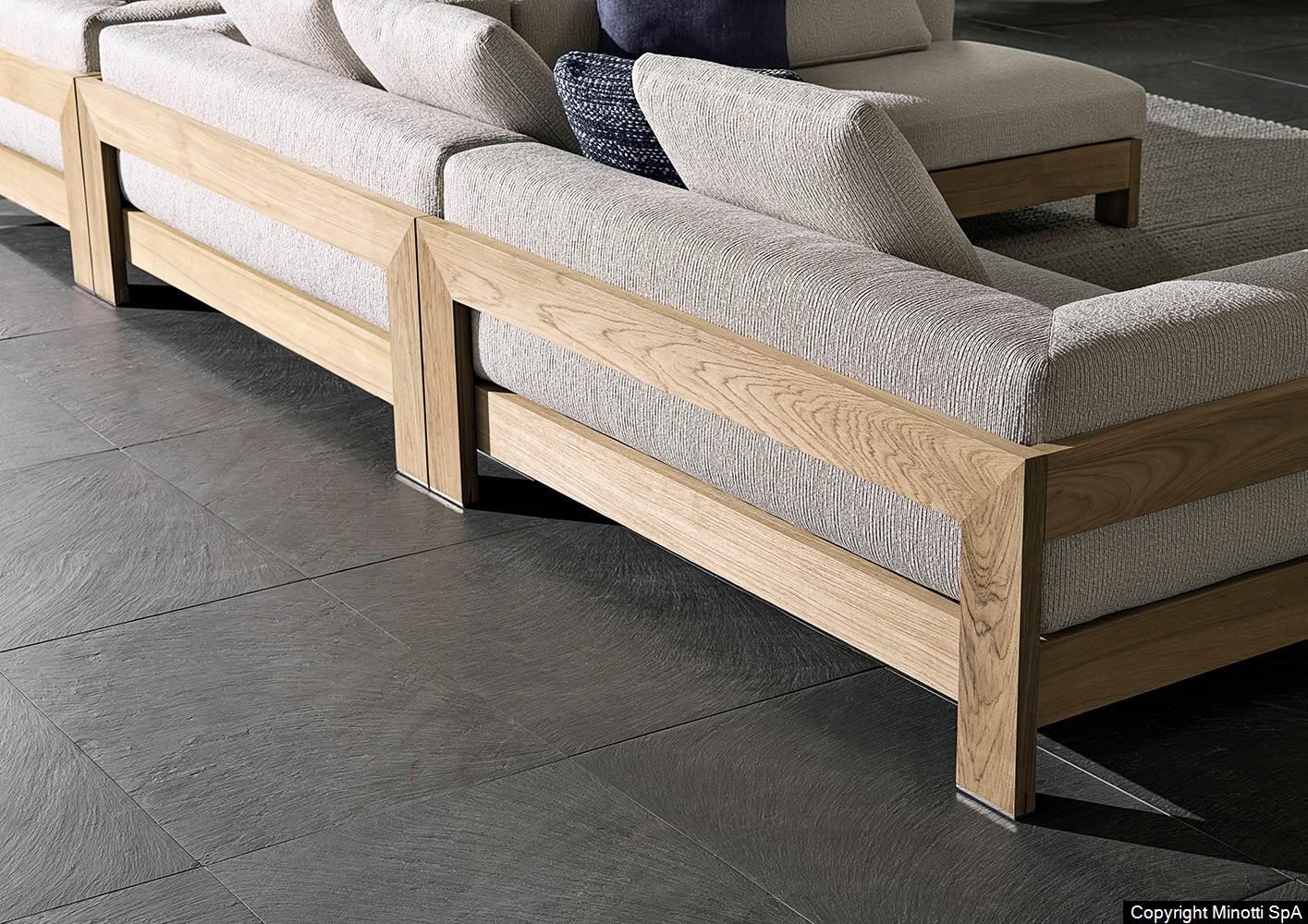 description | Alison Iroko Nature, a modular seating system with rigorous and formal lines, is characterised by an Iroko wood frame with a natural finish. The formal rigour and rational, square aesthetics of its structure are balanced by the extreme comfort and softness of the upholstered parts. The natural Iroko finish acquires a warm colour over time, maintaining a soft, muted nuance. When combined with the other elements in the collection, the value of this seating system as a timeless piece is clear, and, thanks to its very strong identity, becomes an icon of outdoor furniture, lending itself to various possibilities in terms of how it is configured, mixed and matched. |