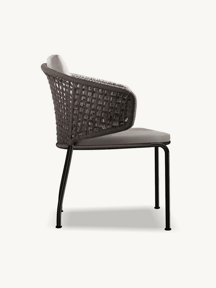 description | The Aston “Cord” Outdoor collection comes with a pewter colour polyester-painted stainless steel frame specially treated for exterior use, as are the padded cushions, which are covered in waterproof fabric. The seat back is in a special braided 7 mm diameter polypropylene cord, available in the following colour variations: Light Gray, Dark Brown, Sand, Sunflower, Khaki Green and Rust, a perfect match for the fabrics in the Art Lifescape 02 textile collection and the shade of Alison “dark brown” outdoor. The painted stainless steel frame is finished with a special polyester paint for exterior use in Pewter colour and the seat back is in a special braided polypropylene cord, available in two colour variations: light grey and dark brown. The seats feature an exclusive Minotti Studio laser-cut geometric design. Inner padding of the cushions is in highly durable expanded polyurethane covered in water repellent fibre. |