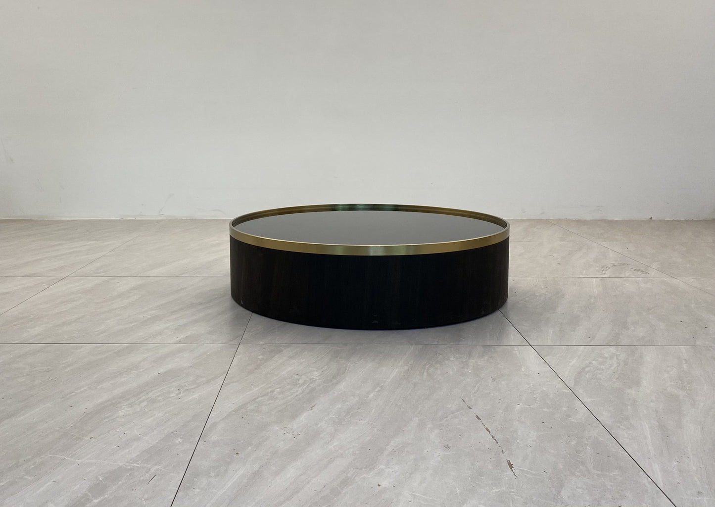description | The cylindrical Bailly coffee table features a metal crown on its top in a polished Light Gold finish or satin finish varnished in Malt colour, reminiscent of a wedding ring, which embraces the top.The Moka-coloured Louro Faia wood of the frame is complemented by a top in Zebrino marble or Black pate de verre with a bevelled edge that creates an unexpected movement on the surfaces. |
