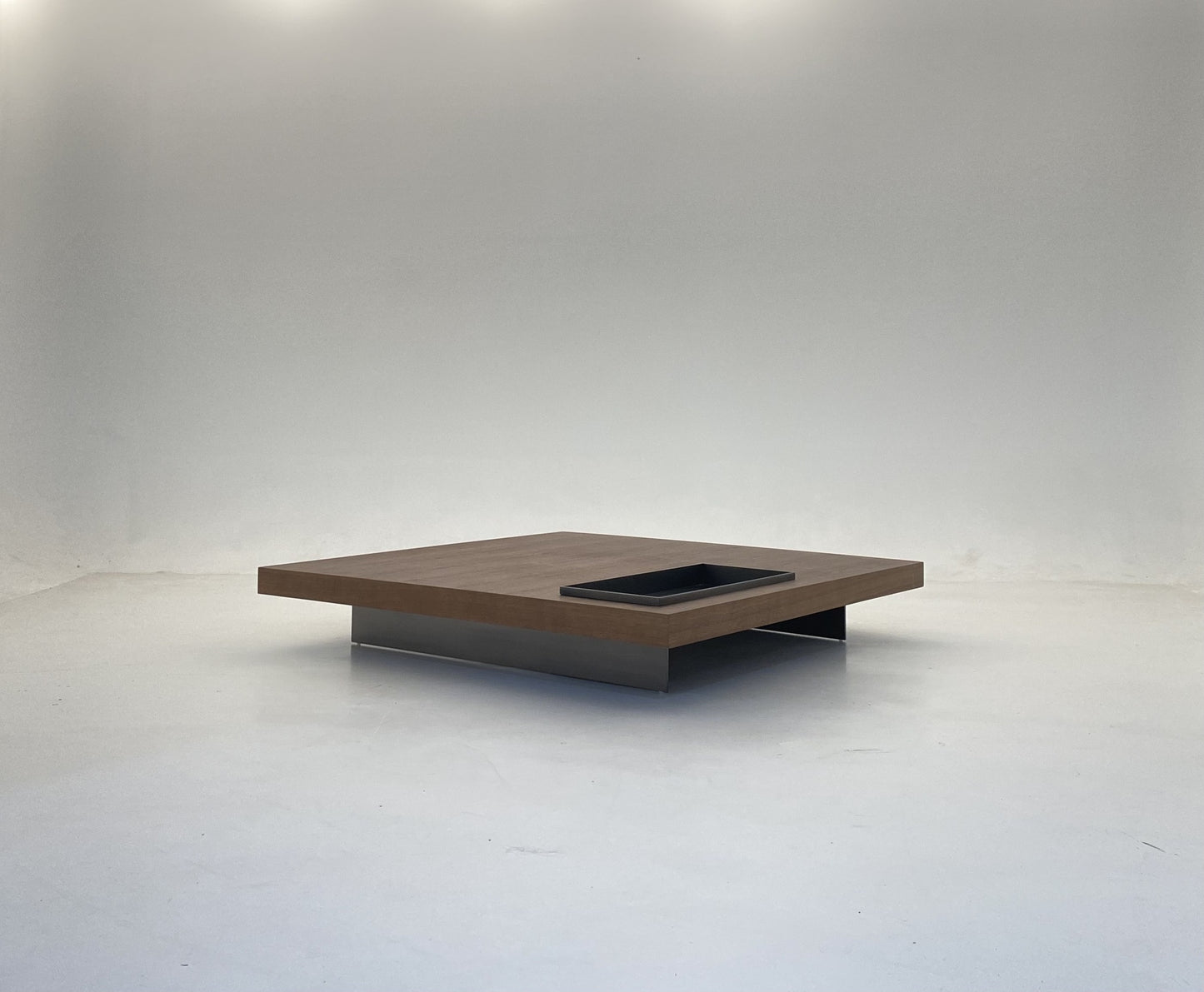 description | The Boteco coffee tables reveal the Brazilian architect’s architectural approach and are characterised by their lower height and the impressive 8 cm thickness of the top, which hosts a built-in tray.They come both in Eucalyptus wood in matt lacquer finish and palisander Santos in matt polyester lacquer finish, both combined with the Sahara Noir marble, matt polyester finish, covering the built-in tray. |