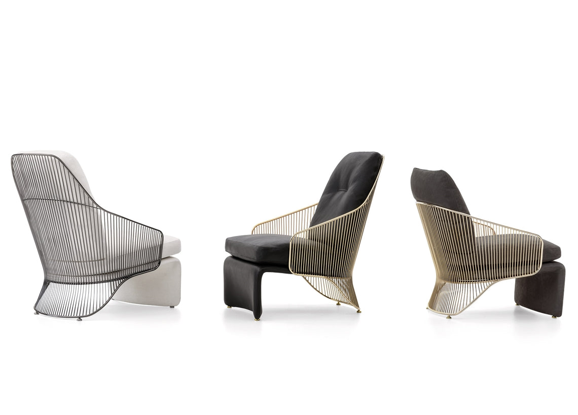 description | Guaranteed to turn heads, this armchair takes its inspiration from the iconic period of mid-century elegance and skillfully blends experimentation in the design of shapes with sophisticated decorative taste.The construction of the Colette armchair is fairly complex. The profile of the external structure in metal is calendered, assembled and welded at more than 300 points. The special metallic finish is achieved through galvanization in a white-gold bath, followed by application of a transparent protective coating that lends durability and depth. The structure of the seat terminates at the front in a support structure and is made of polyurethane foam with metal insert, and elastic straps to ensure the utmost in comfort. The contoured seat cushions and seat back allow them to mold perfectly to the structure. |
