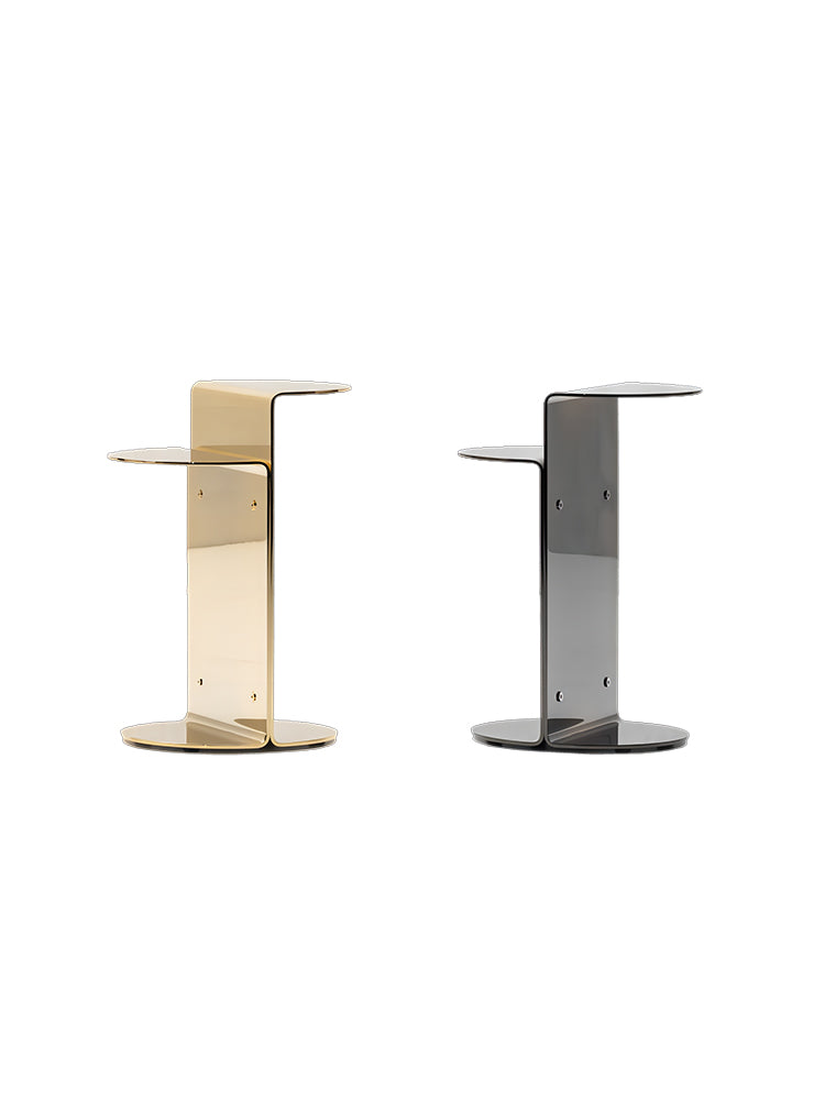 description | Designed as a jewel-sculpture, with its metallic glints, the Flirt coffee table adds a bright touch to interiors.The structure, made entirely from a sheet of polished stainless-steel, is bent to form two “C”s facing one another, offering two semi-circular tops on different levels.Like an artist’s multiple, Flirt only comes in one size and is varnished in Black-Nickel or Gold.The screws that join the two C-shaped elements serve as decorative details, enhancing the metal sheet. |