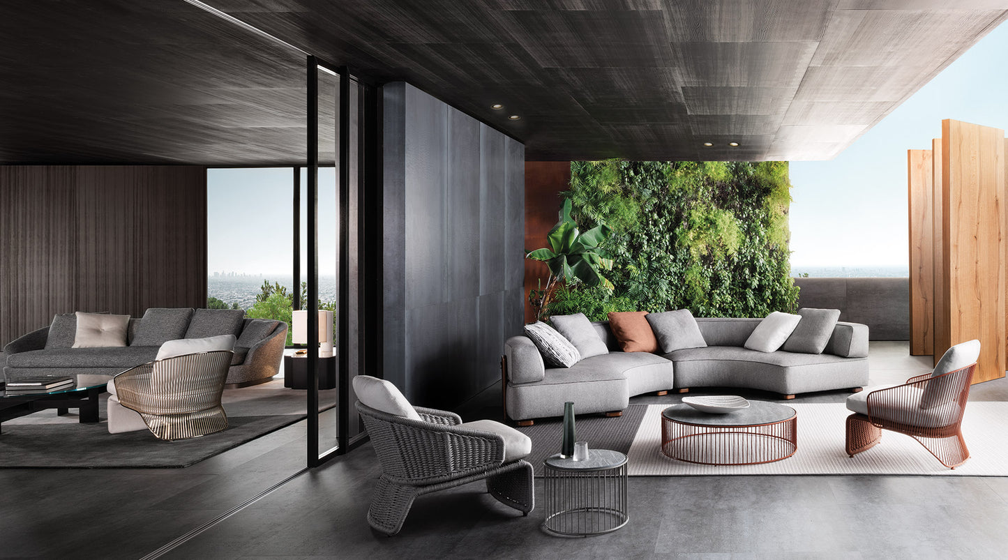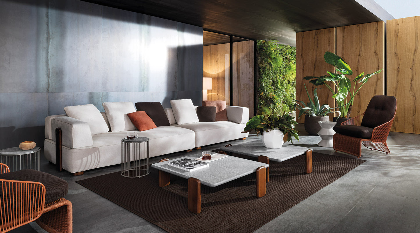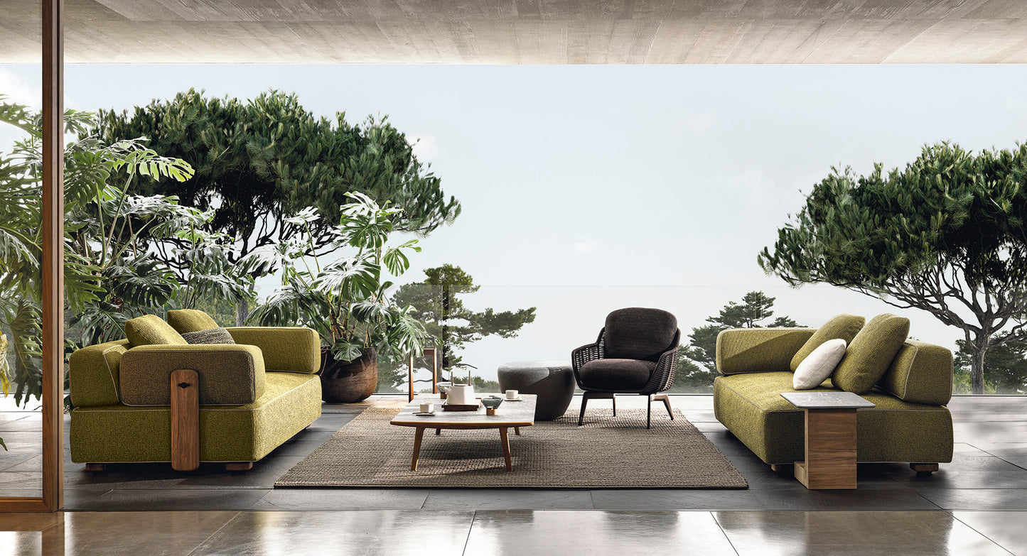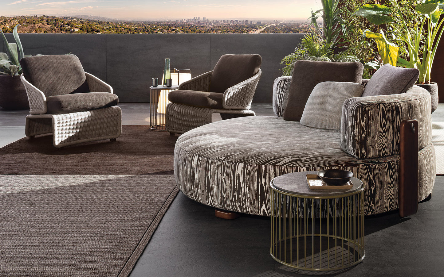 description | The frame of Florida is in metal, appropriately treated to withstand corrosion, and it is immersed in a foam padding, then covered in waterproof fibre and fabric, making it weatherproof. The feet are made of solid iroko wood with a natural finish, or in natural teak. The rear supports, available in the same finishes, support the cushioned backrest with refined Pewter coloured metal frog fastenings, making the cushion covers quick and easy to unfasten and remove |