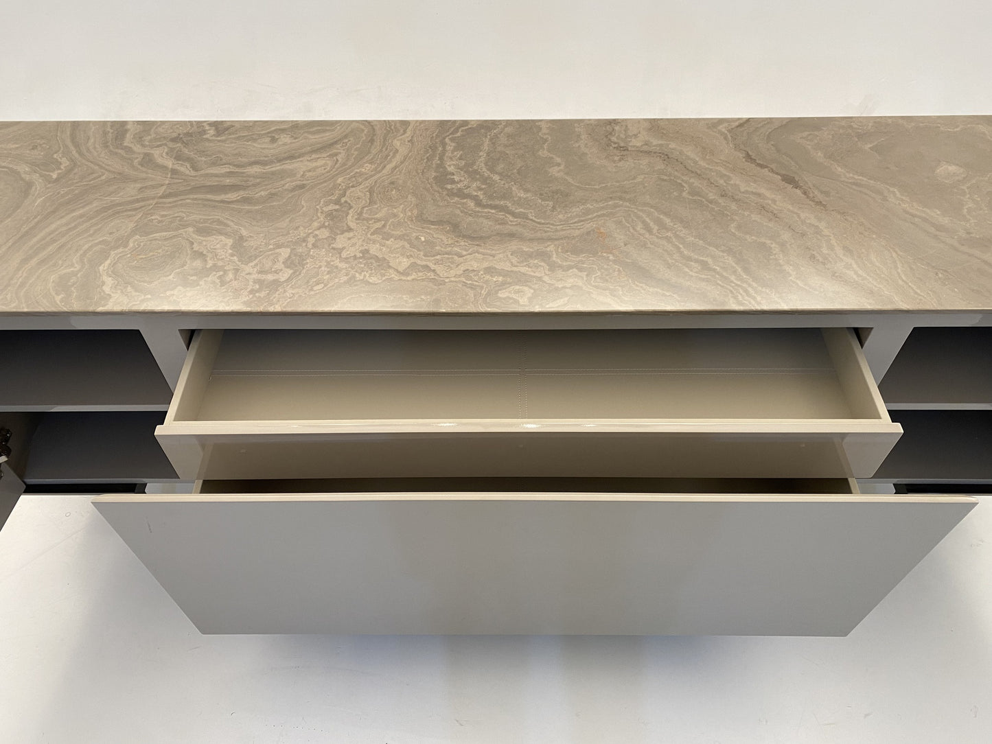 description | Designed in 2017 by Christophe Delcourt and consisting of a series of elements for the living, dining and night areas, the Lou family is enriched by new types of cabinets.Synonym of refined cabinet-making and high-end technology, they have in common the preciousness of the materials, from the brushed ash or the opaque ebony of the structure to the Calacatta marble or the flush-fitted tops in wood matching the colour of the structure, to the glossy painted metal base.While maintaining the same precious and refined details, the new pieces represent a lightened version of the original project. A unique design defines the leg conceived as a circular section with the concave side facing outwards, treated with a Pewter-coloured glossy finish that emphasises its elegance. |