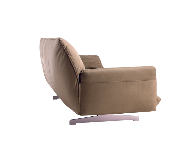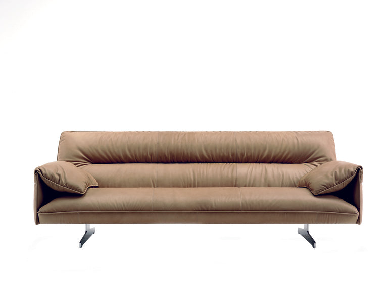 description | Designed by Jean-Marie Massaud, the Antohn sofa is the epitome of relaxation. Soft and ethereal, it almost appears to hover above the ground thanks to its slender T-shaped titanium-coloured aluminium feet: arranged like blades and set back from the front of the structure, they are invisible to the eye. The cushions are generous and welcoming, the padding is rich, the upholstery consists of soft Pelle Frau® leather. Distinctive features of Antohn are the high backrest, which also acts as a head rest, and the horizontal line that runs along the entire surface of the sofa, obtained simply by elegantly folding the leather. |