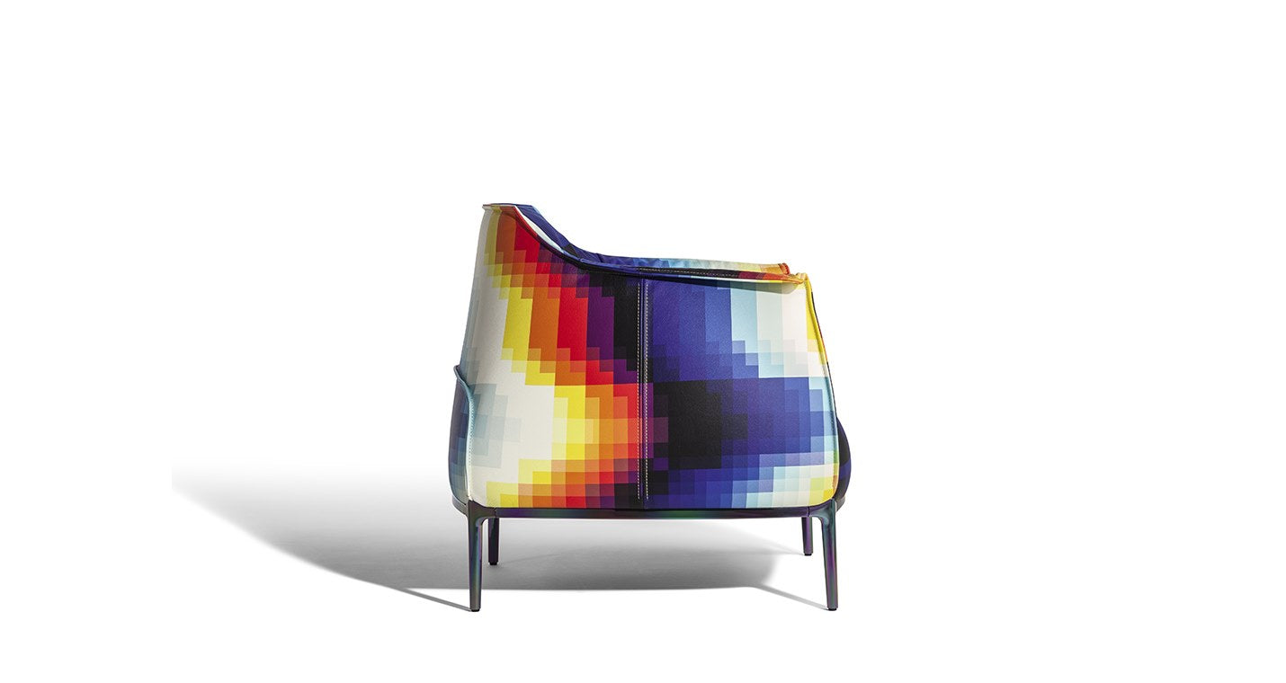 description | Archibald, designed by Jean-Marie Massaud, is a wide and deep armchair with a steel structure, padded with moulded polyurethane foam and polyester wadding for greater comfort. It is distinguished by the pleasantly textured leather upholstery and the folded armrests that resemble a shirt collar. Thanks to a process of digital printing on the leather, usually reserved for small luxury leather goods, Felipe Pantone's artwork gives the upholstery a nuanced palette of reds, oranges, yellows, whites and blues reminiscent of the hot and cold temperatures of a heat map. The upholstery is in Pelle Frau® ColorSphere® Impact Less, the innovative leather tanned with sustainable components and without the use of chrome for a reduced environmental impact. |