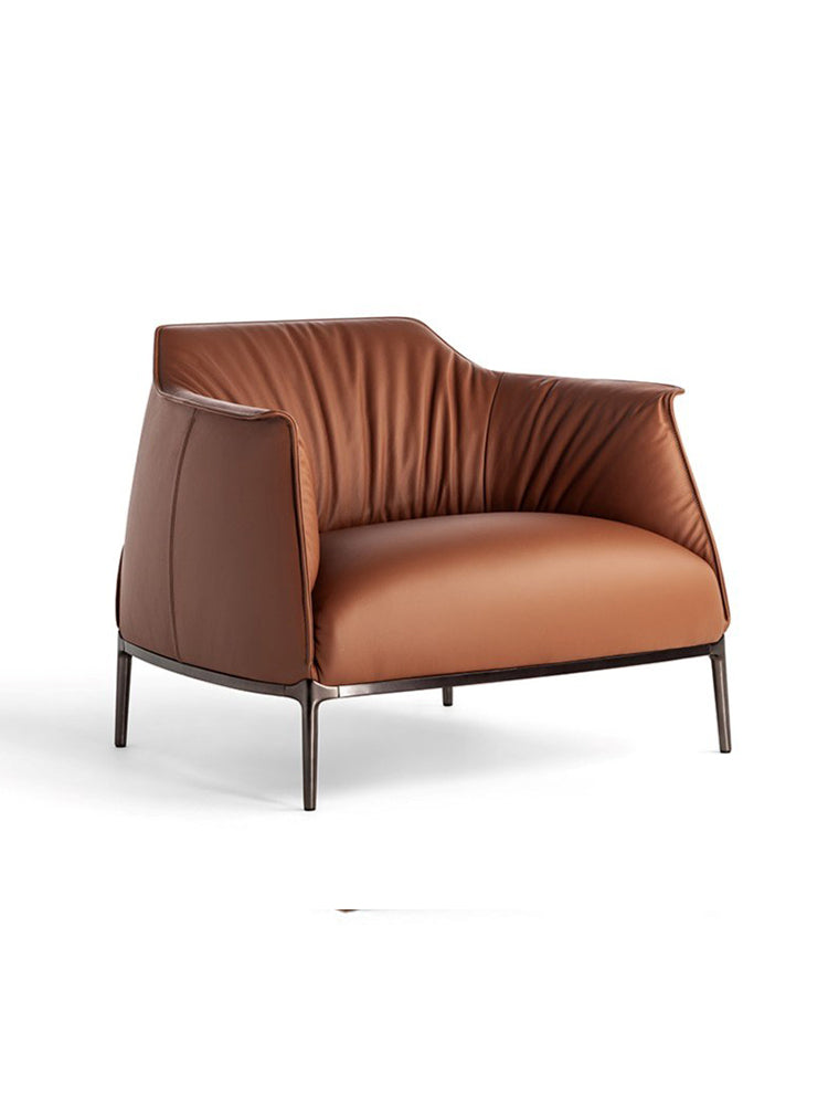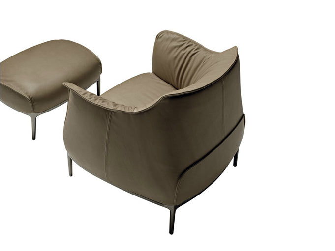 Archibald, designed by Jean-Marie Massaud, is a wide and deep armchair with a steel structure, padded with moulded polyurethane foam and polyester wadding for greater comfort. It is distinguished by the pleasantly textured leather upholstery and the folded armrests that resemble a shirt collar. Thanks to a process of digital printing on the leather, usually reserved for small luxury leather goods, Felipe Pantone's artwork gives the upholstery a nuanced palette of reds, oranges, yellows, whites and blues reminiscent of the hot and cold temperatures of a heat map. The upholstery is in Pelle Frau® ColorSphere® Impact Less, the innovative leather tanned with sustainable components and without the use of chrome for a reduced environmental impact. |