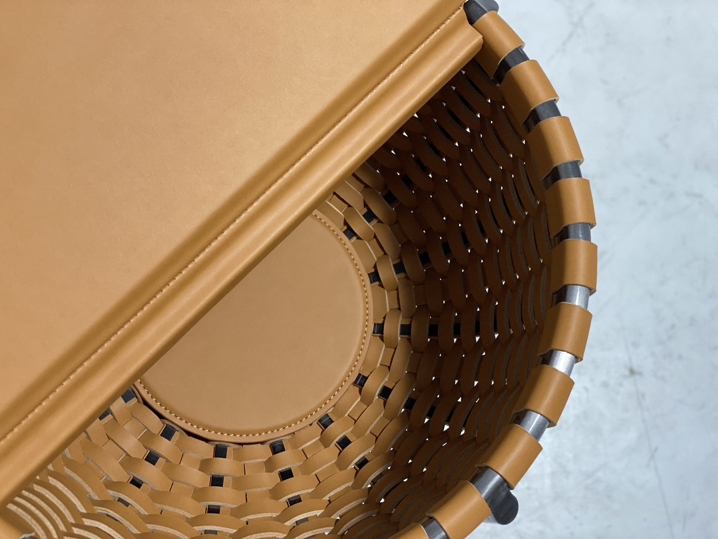 description | Gam Fratesi took their inspiration from the traditional sewing basket when designing the modern and highly elegant Cestlavie accessories. The textural sensations of the saddle-leather and the lightness of the metal design come together in an evocative and stylish visual synthesis. Intricate processing showcases the leather culture and top-quality craftsmanship with which Poltrona Frau has always been associated. Skilfully handwoven straps of Cuoio Saddle Extra leather give form to the casing, one by one. Supported by a tubular aluminium structure, the Cestlavie storage basket appears to be suspended on slender, almost graphic, steel legs. The depth of the saddle-leather and the clean metal create interesting light effects. |