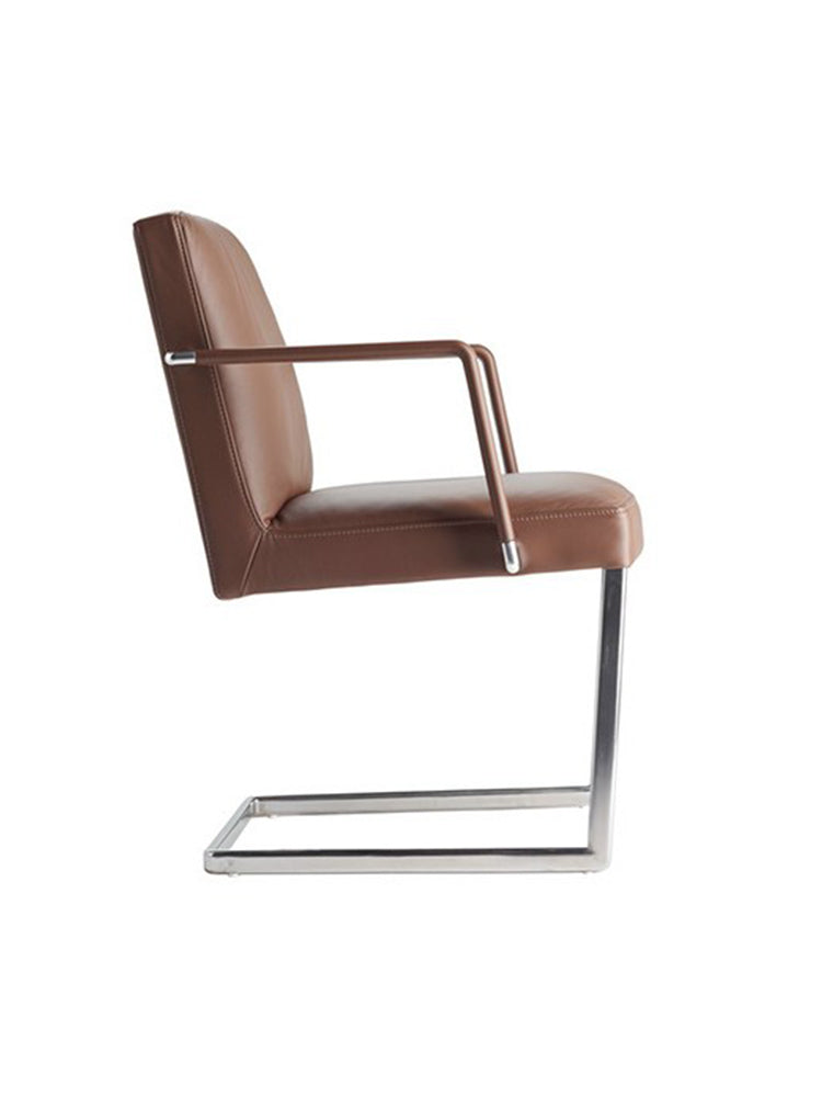 Pelle FrauThe Chancellor Conference chair has a supporting base in tubular chromed steel or lacquered dark grey, which ends in transparent plastic feet. |