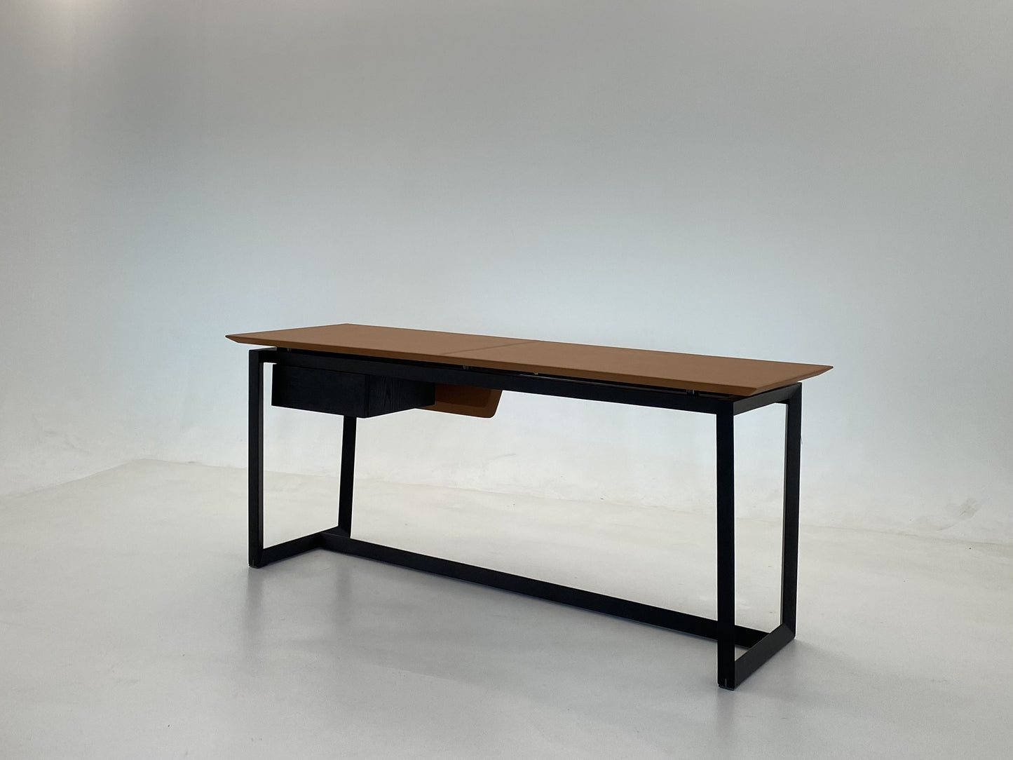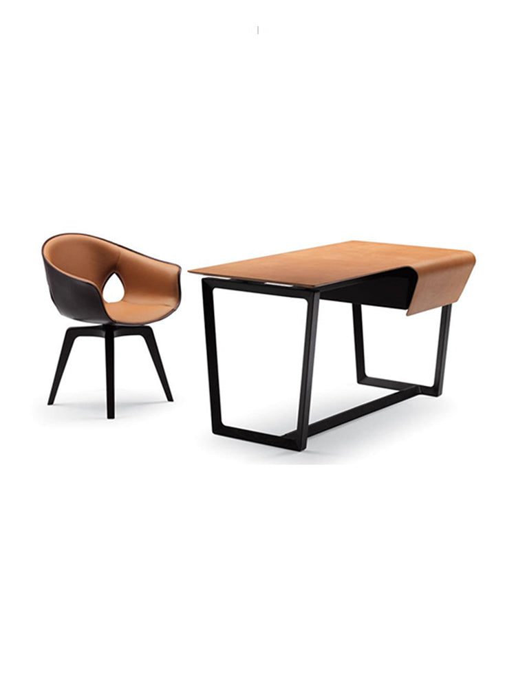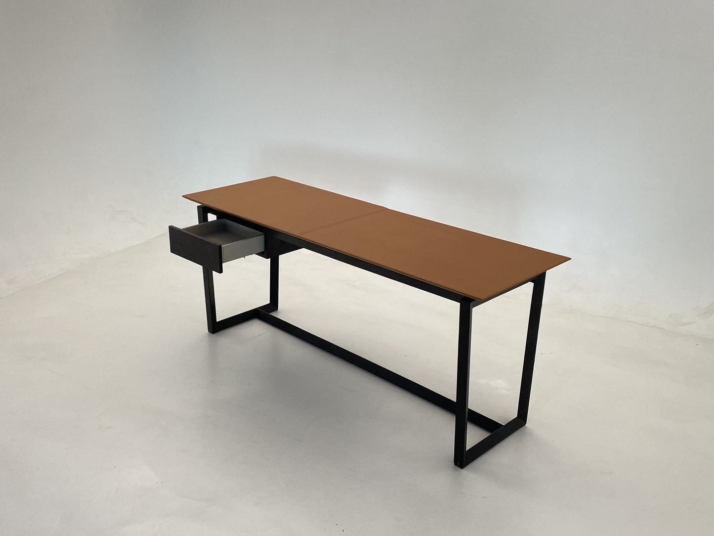 description | The Fred desk is a meeting of light, almost ethereal geometries. Roberto Lazzeroni creates a piece of furniture in which the visual pleasure of a continuous saddle-leather surface is underlined by delicate hand-produced incisions and cold markings that create refined graphic decorations. A special procedure makes it possible to curve the front of the saddle-leather without any need for internal supports. The ideal companion of the Fred desk is the Ginger chair, designed to make the study even more complete and harmonious. |