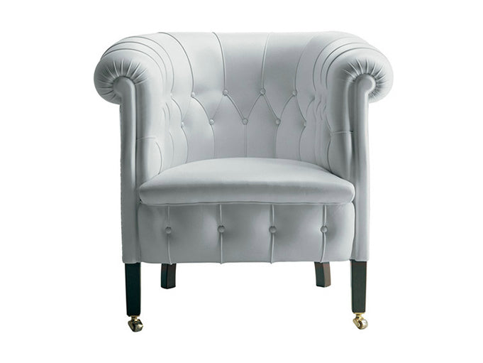 description | Fumoir reproposes the stylish living room furnishings, exemplified by models 118 and 518, that appeared in Poltrona Frau's catalogue of the Twenties. It is inspired by the low-back dished armchair of the 18th century, especially suited for the upright sitting position that people assume around a table or in a waiting room. The entire range comes with front wheels of brass and is characterised by the diamond-shaped stitching pattern of the seatback. The bearing structure is made of seasoned Beech. Seat springing is by means of biconic steel springs tied by hand and rested on jute belts. The padding material is rubberised horsehair. Available upholstered in Pelle Frau® leather from the Color System, Heritage leather, Soul leather, fabric from Poltrona Frau's exclusive textile collection. The client may also provide own material (c.o.m.). |
