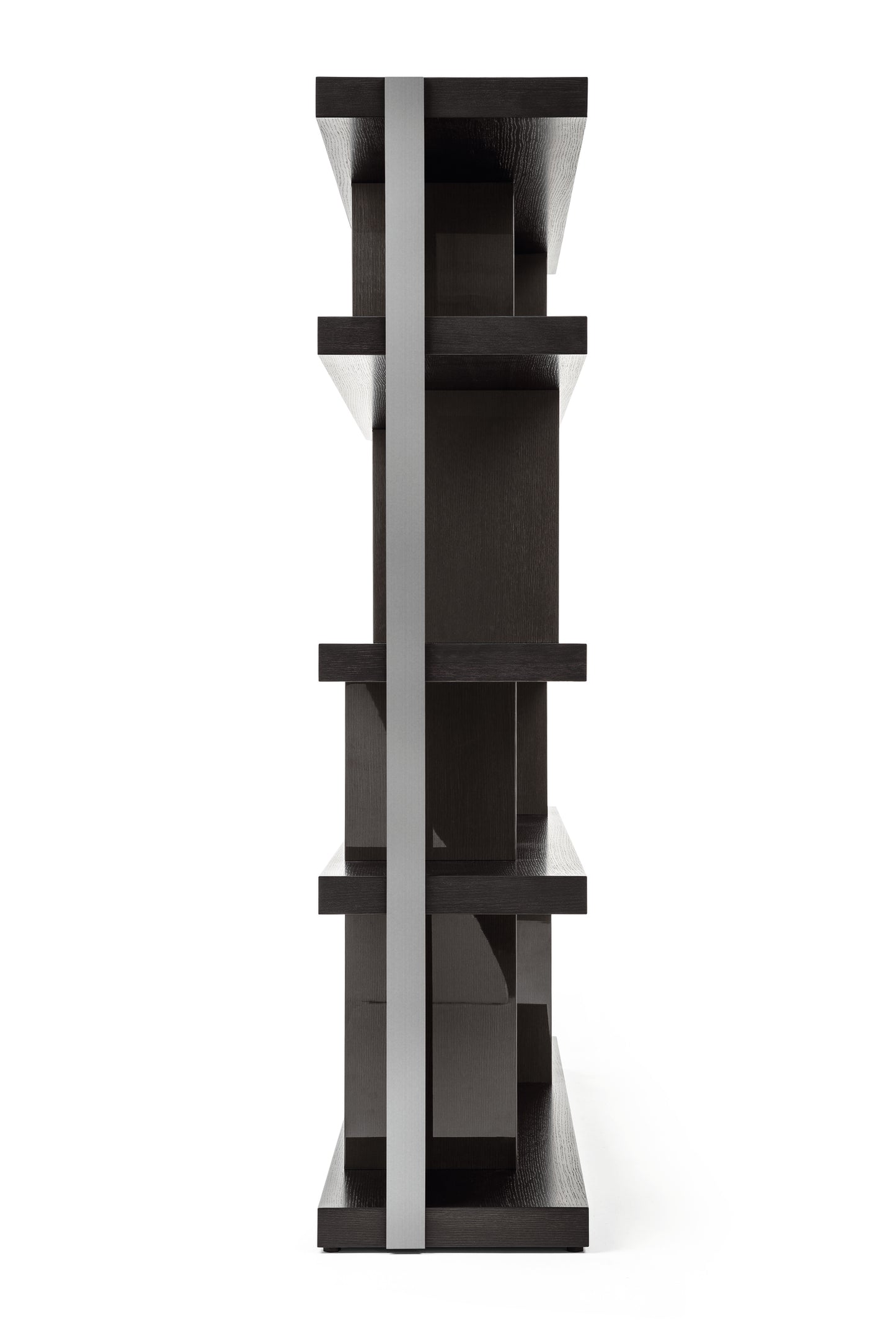 description | The Jobs Bookcase collection is the result of Rodolfo Dordoni’s close study of the evolution of behaviour in relation to new technologies and the careful selection of materials: leather, shiny and matt woods and structures in brushed steel enrich the different volumes in a simple, understated way to create new work areas. The Jobs Bookcase High Cabinet and Low Cabinet are both storage units and bookcases, and alternate open compartments with shelves and compartments with doors. Perfect against the wall or in the centre of the room, they can also be used to define, divide and organise spaces. The two versions differ in terms of the arrangement of the elements and vertical dividers which, in the wall variant, are all further back, making it possible to optimise the spaces. |