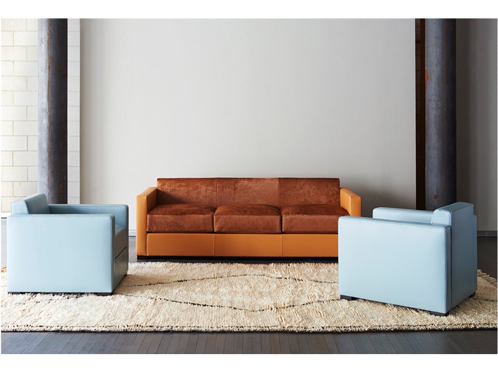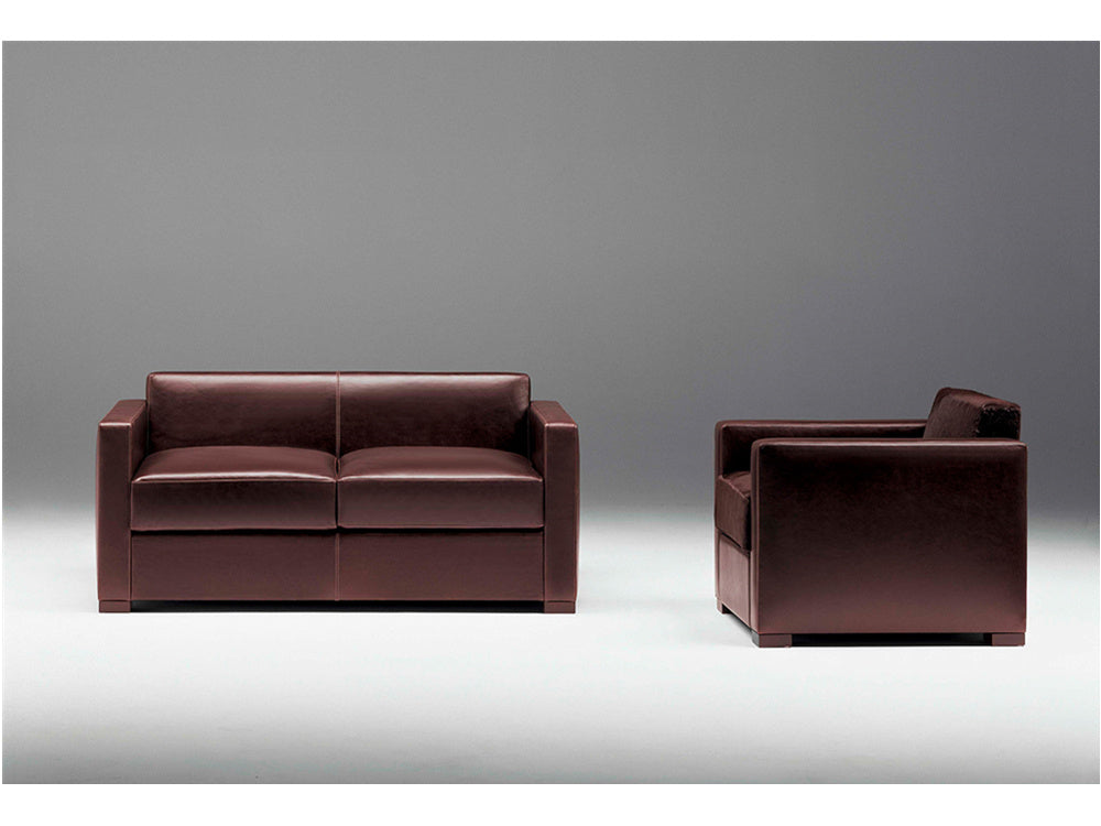 description | Peter Marino designs a soft, deep seat for Linea A: a two- or three-seater sofa and an armchair with deliberately reduced dimensions but no less comfortable for it. The compact design makes it a very versatile piece of furniture while the wide seat is very welcoming and warm. The Linea A sofa and armchair are distinctive for the extreme precision of the upholstery stitching, perfectly taut and calibrated in relation to the sturdy solid beech and birch plywood structure. Close attention has also been paid to the internal details like the zigzag springs of the seat and the goose down padding of the cushions with stabilising insert in polyurethane foam. The upholstery is available in Pelle Frau® leather or fabric and in the combination Pelle Frau® leather with pony skin leather for the backrest and seat cushions. Feet in beech with a wenge stain. |