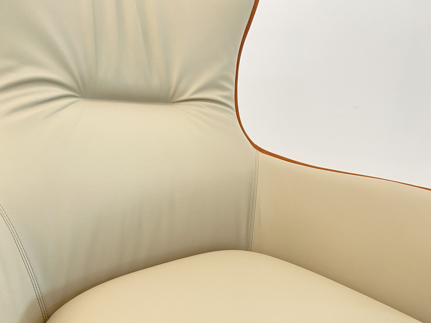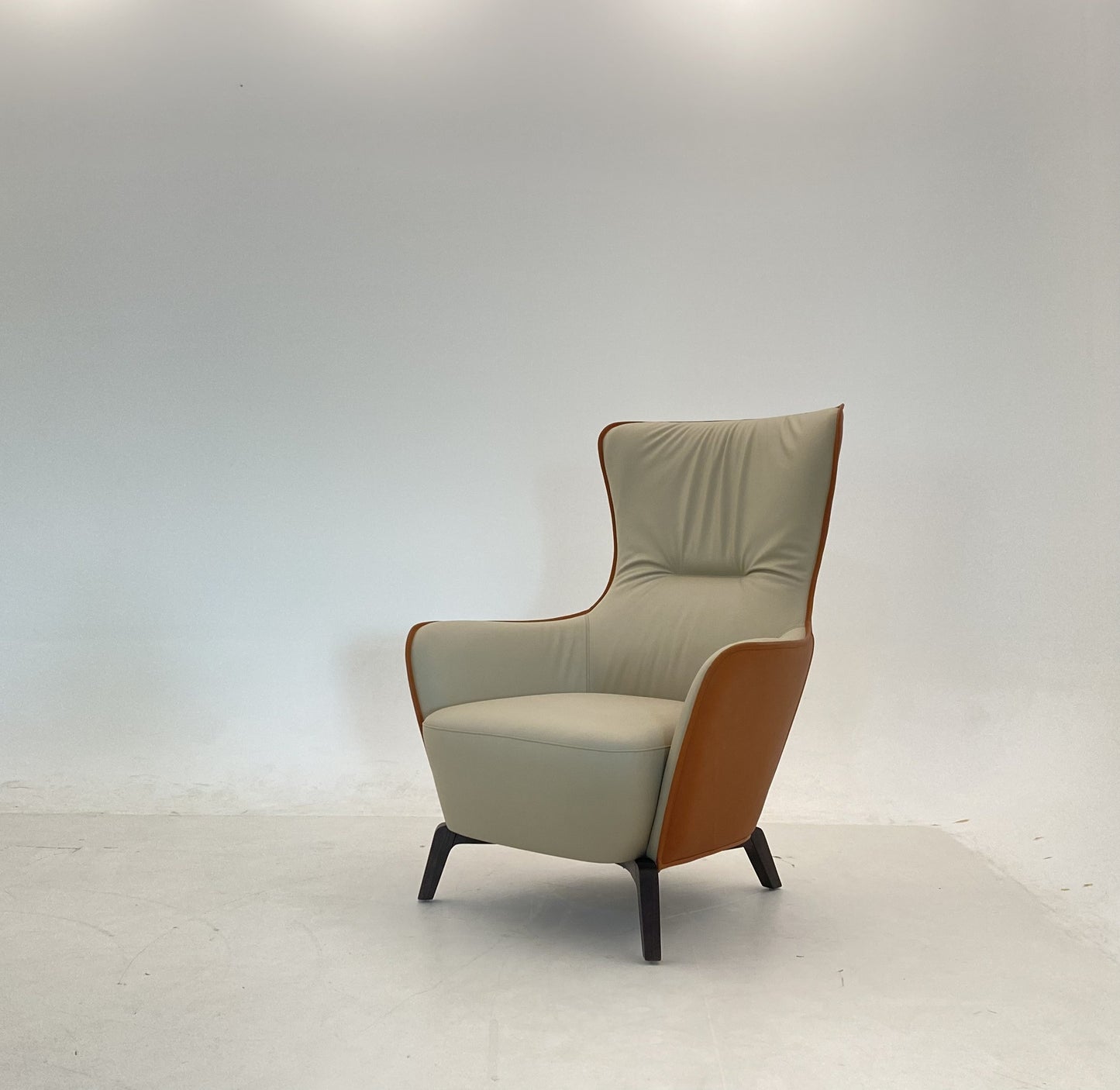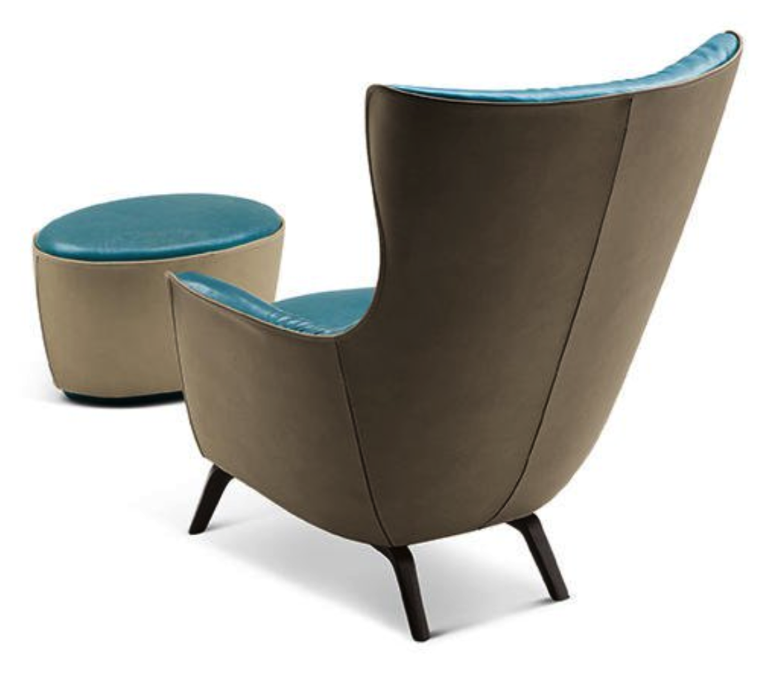 description | Designed for relaxation and reading. Its round, agile forms recall the dynamic, sophisticated designs of Carlo Mollino, enhanced with the expert use of materials. The combination of Pelle Frau® leather or fabric and Saddle Extra hide makes a come-back, further exalted by the elegant visible stitching. The back structure is in moulded polyurethane foam. The springing of the seasoned beech-wood consists of double-cone steel springs that are individually tied and attached to jute webbing. Mamy Blue, even in its swivel version, has its support base with 4 feet in solid wengé-stained ash wood (32) with a support fixing it to the frame in black-coated steel.. Pouf. Structure in seasoned beech and multilayer birch. The plinth resting on the ground is in multilayer birch in a black textured coat with protective plastic caps. The upholstery is exalted by contrast stitching, matching the Saddle Extra hide of the lower part with the Pelle Frau® leather or fabric used for the upper surface. Headrest. Padded in polyurethane foam and goose down. No need to be fixed into place, rather it is simply rested on the backrest, where it can be positioned at willthanks to a counterweight inserted into the lining. Pelle Frau® leather or fabric upholstery. |
