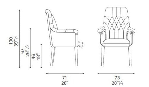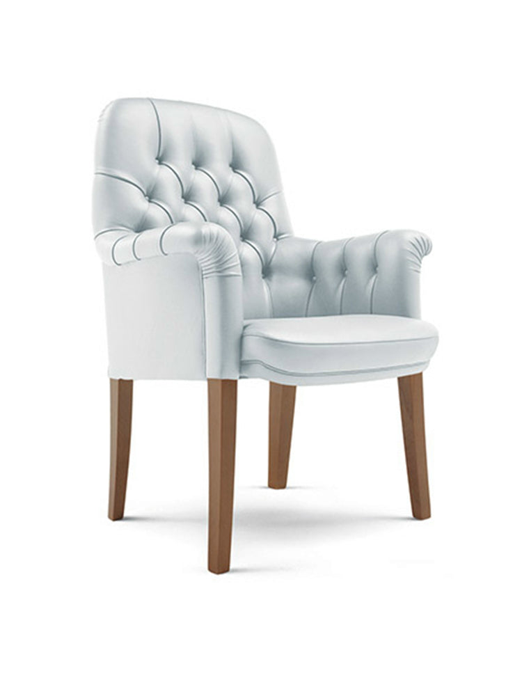 description | Oxford is a Visitor tufted leather chair, with base made of beechwood in a medium walnut stain. |