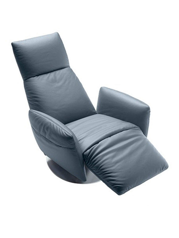 description | An authentic haven of relaxation and wellbeing where you can enjoy a little “me time”. The Pillow armchair designed by Poltrona Frau R. & D. is the most complete aesthetic and functional expression of the reclinable seat. It is completely covered in soft leather upholstery to guarantee total comfort. The headrest, backrest and footrest are adjustable to guarantee maximum ergonomic comfort. The circular steel base, in matt black brushed or lacquered finishes, enables the armchair to be swivelled 360°. The padding is in variable density CFC-free polyurethane foam and polyester wadding. The Pillow armchair is available in 3 versions and in the electric and rechargeable battery models it has a very smooth mechanism that makes it possible to individually adjust the backrest and footrest. The control pad is concealed in the pocket of the left armrest. In the manual version the movements are synchronised thanks to a lever inserted between the left armrest and the seat. The angle of the headrest can be adjusted manually and independently of the backrest. The upholstery of the Pillow armchair is in Pelle Frau® leather. |