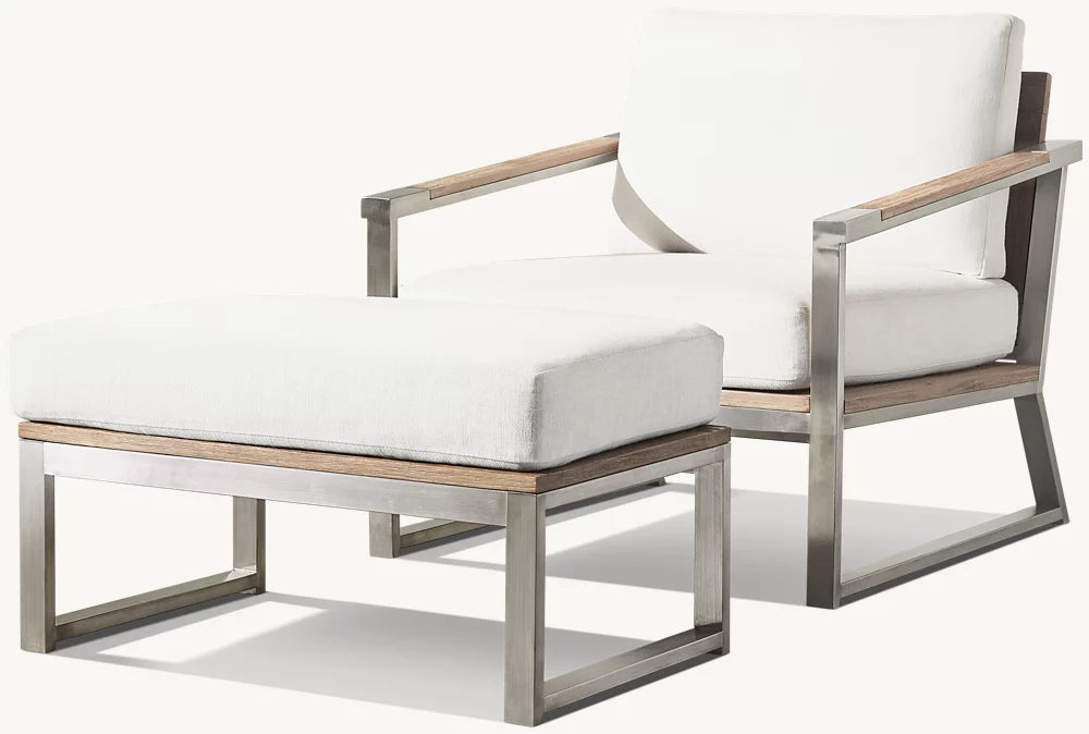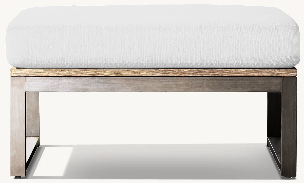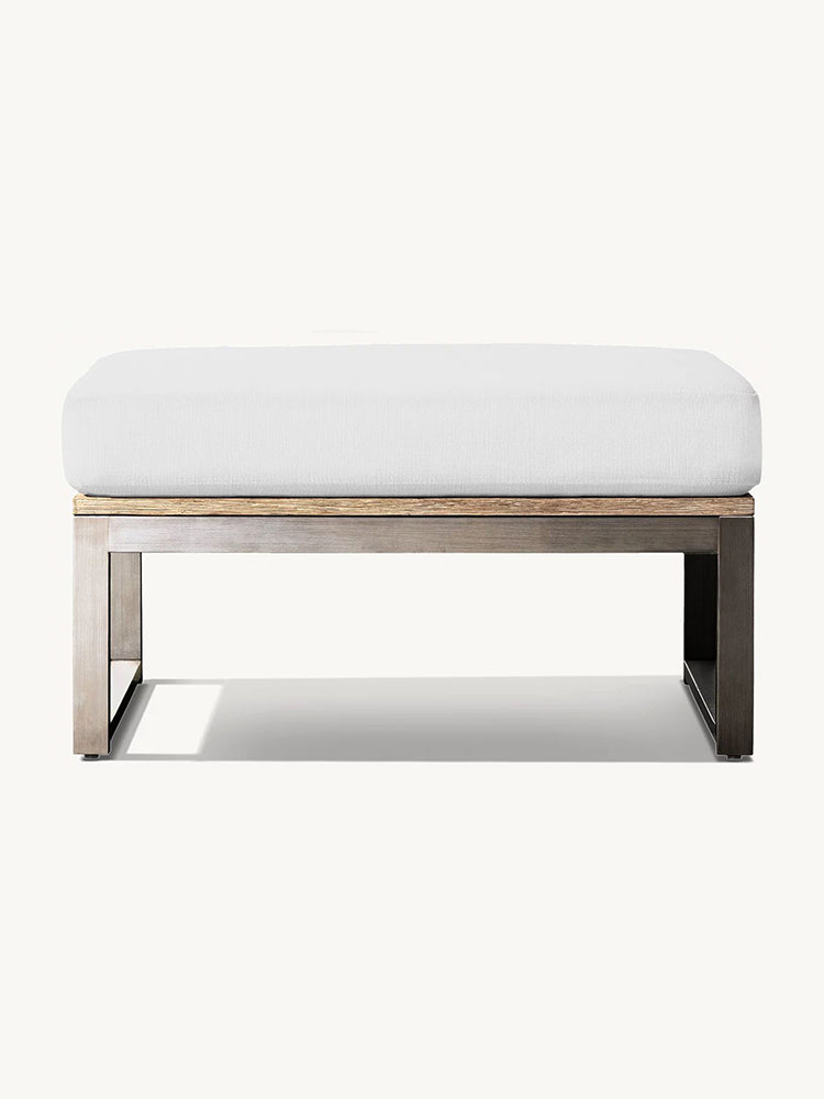 description | Recalling the clean lines, dynamic angles and spare silhouettes of the International Style, our ottoman by Louis Ho pays tribute to the spirit of modern architecture. Employing dual materials, Ho pairs a sleek open frame handcrafted of pure stainless steel with an inset of premium teak to achieve an aesthetic at once cool and warm. A tailored cushion completes the look. |