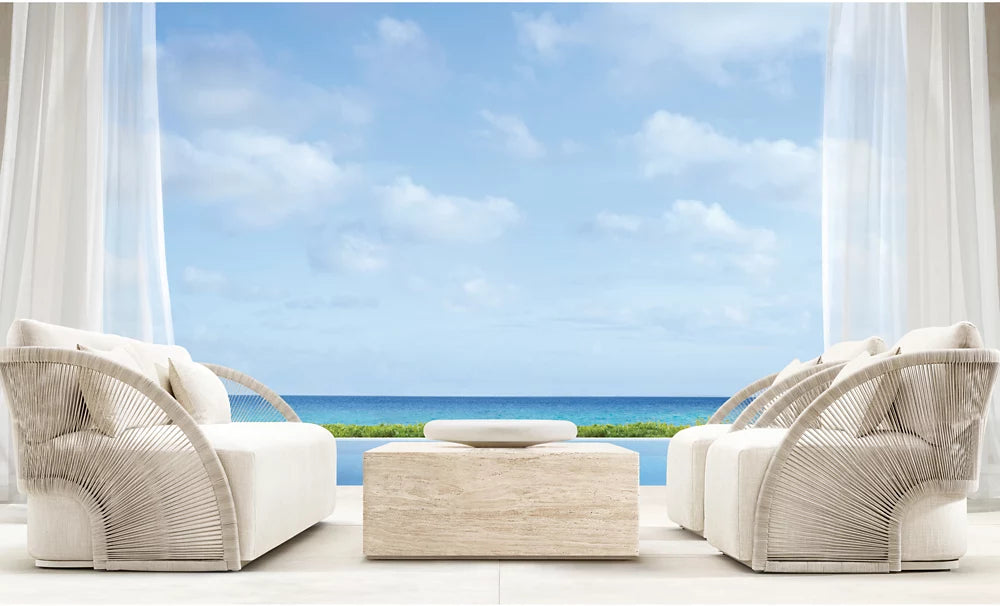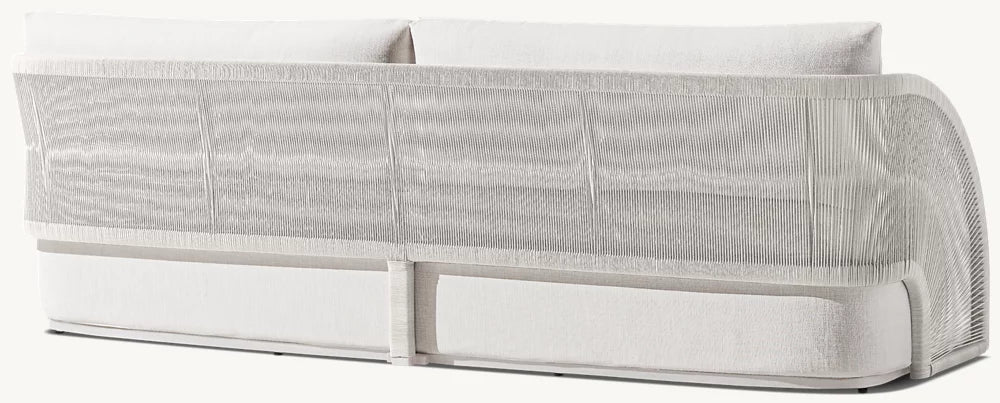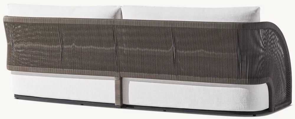 description | Ann Marie Vering's Pavona collection is inspired by the beauty of the handheld folding fan, its arc offering a dramatic profile. The handwoven frame – a single continuous panel – wraps high-crowned waterfall cushions in sweeping curves that evoke the motion of an unfurling fan. The cord's open weave creates radiant patterns that shift as the day and the seasons change, offering a stunning play of light and shadow. |