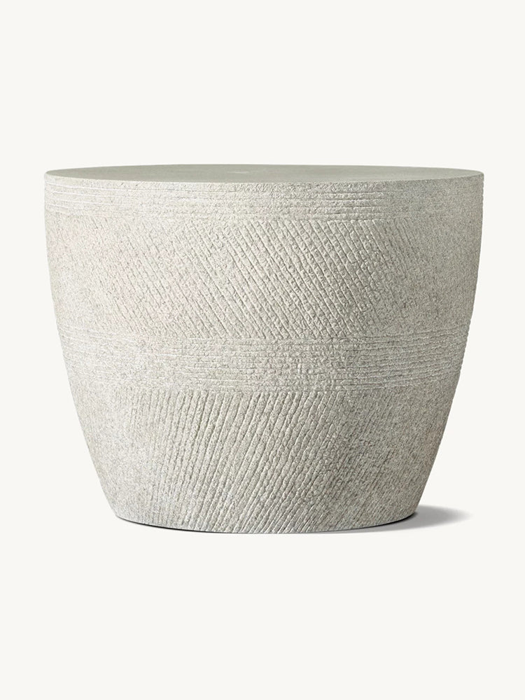 description | Designed by Mitch Brean, our table gains textural interest from the horizontal bands and diagonal and vertical lines etched into its surface. Lightweight but substantial, it's an artful combination of pattern and form. |