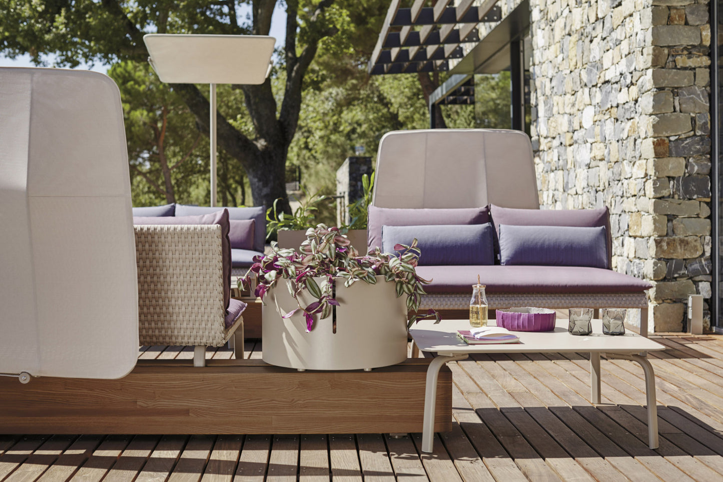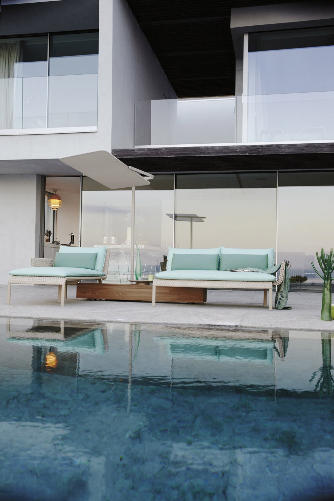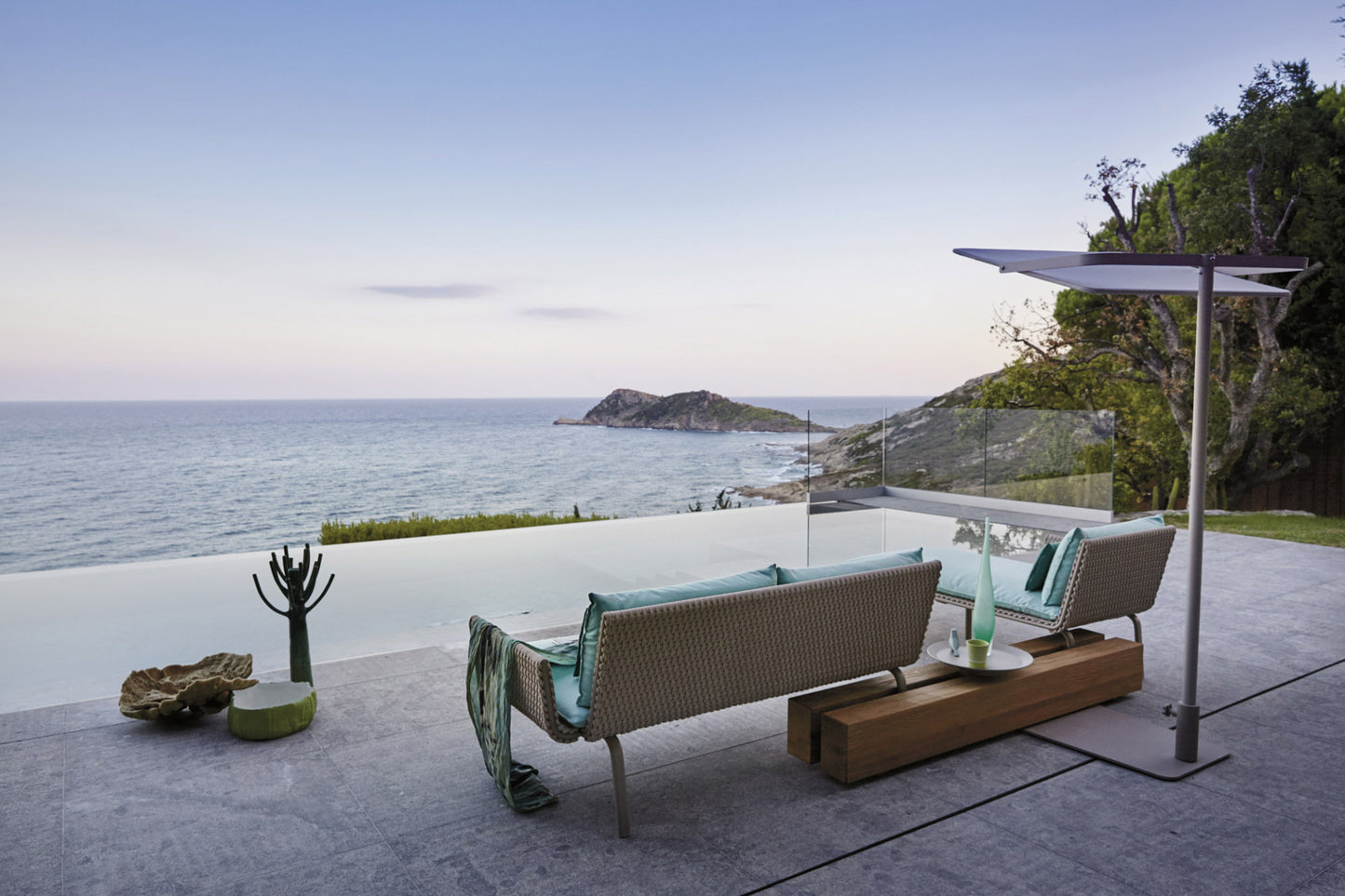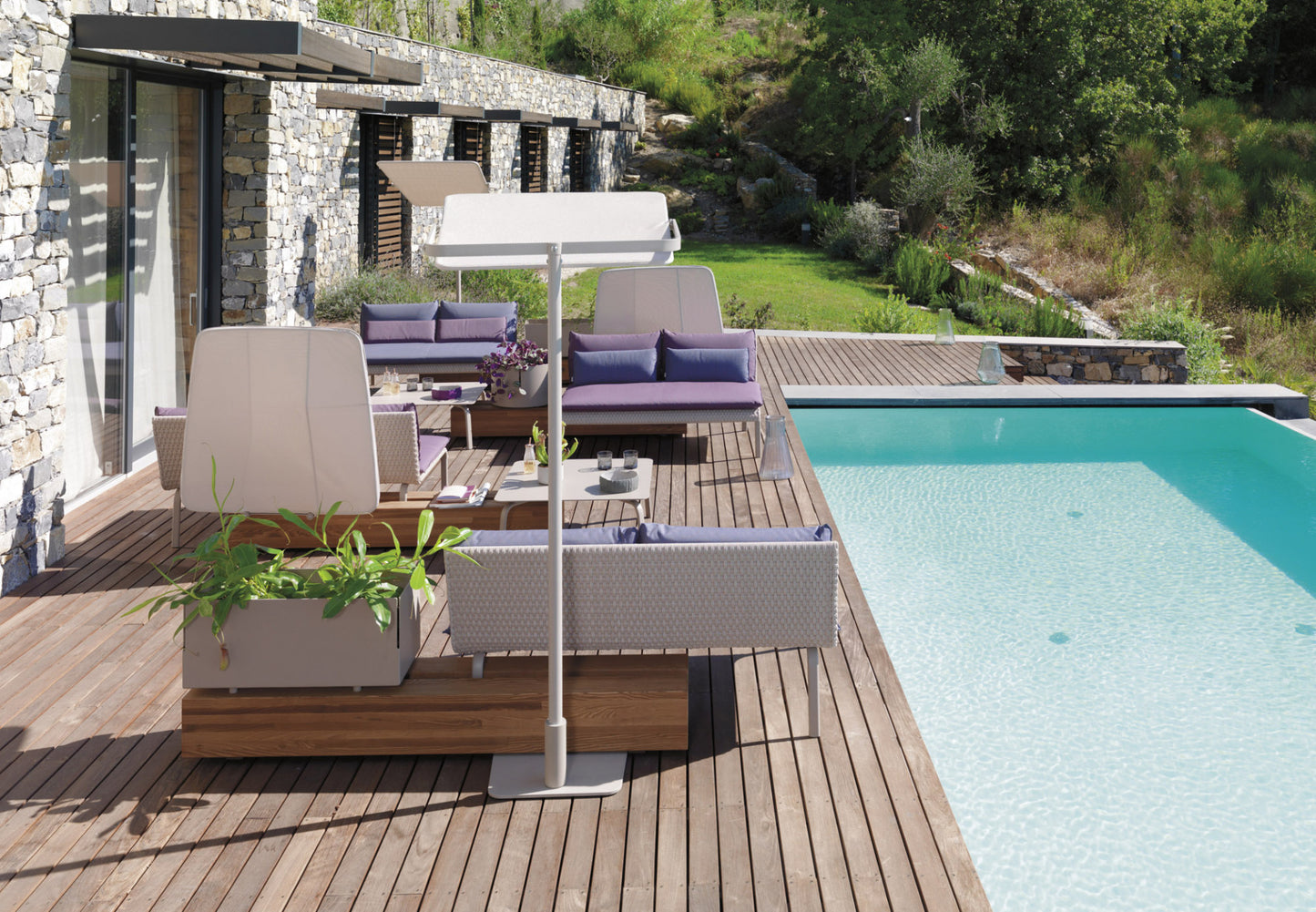 description | Sunshade, stainless steel and aluminum frame with Polyscreen textile. Geometric and essential, this sunshade is vertically adjustable and can be easily combined within the outdoor compositions. Ideal for contract projects, it is suitable as well for residential fittings, giving a touch of simple elegance to pool and relax areas. |