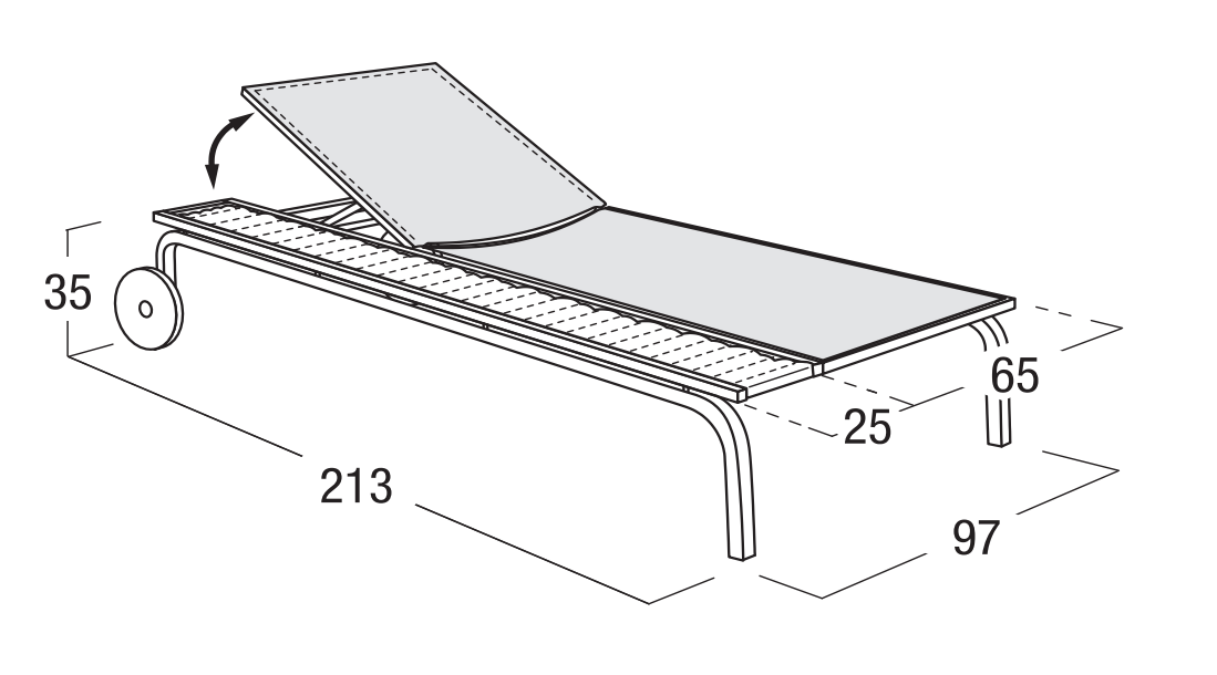 description | Sunbed with wheels, frame in aluminum and Batyline, side panel woven with Nautic Rope. The power of this sunbed, ideal for furnishing the wellness and spa areas or the pool areas, is given by the versatility of its side panel: it may be used as a table, a seat, a top, etc...Furthermore, the wheels allow to move it very easily. The precious woven adds value to the basic structure and make it fitting both for private and for contract use. |