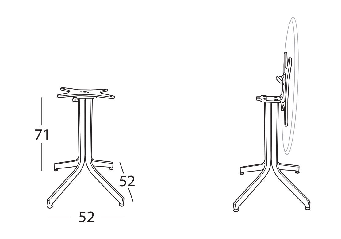 description | Table base with top-folding system, aluminum powder coated. Perfect for contract projects, for outdoor furnishing of restaurants, bars, hotels, this base lays on four feet made of aluminum powder coated, resistant and long-lasting. Suitable for top : cm 60x60 / 70x70 / 80x80 / Ø 60 / Ø 70 / Ø 80 |