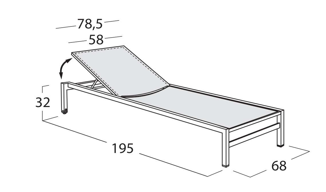 description | Sunbed, aluminum frame powder coated and Batyline. Resistant and minimal, it's perfect for furnishing wellness, Spa and pool areas, both for contract and private use. Easy stackable. |